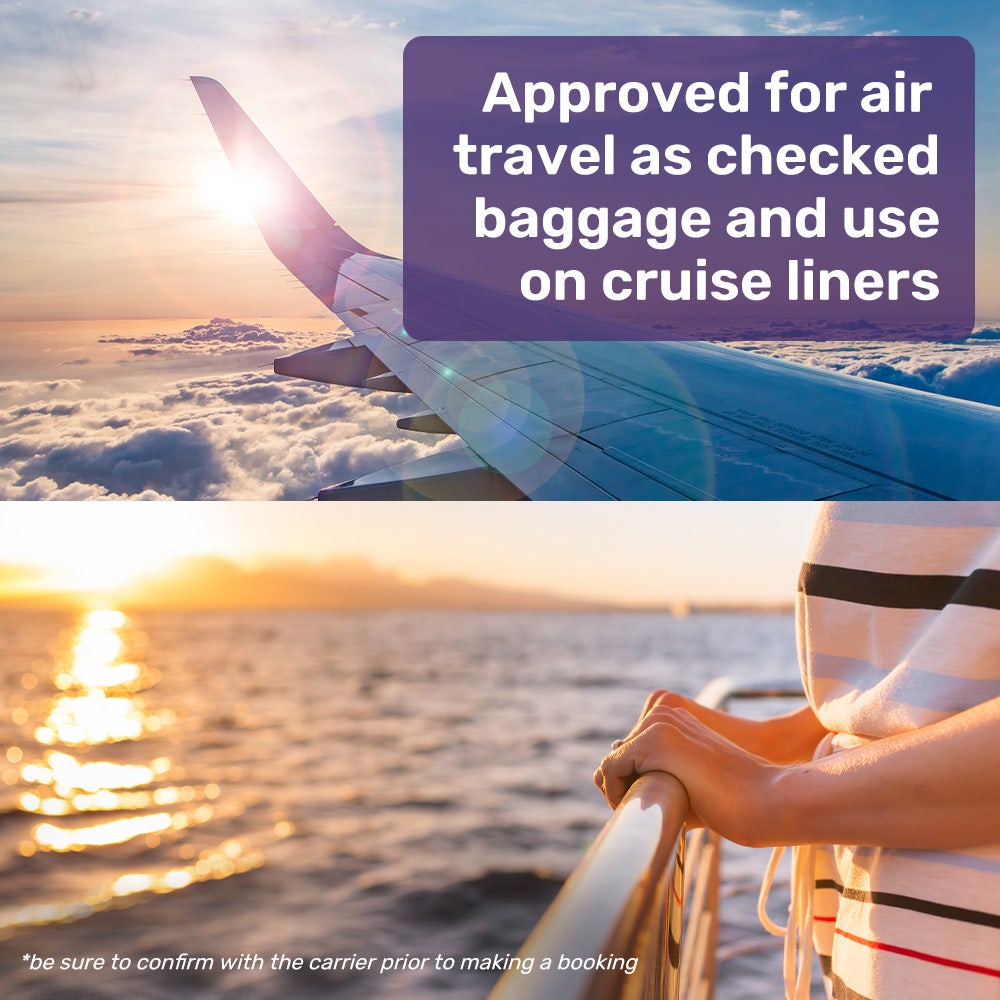 • Battery capacity of 288Wh, permitted on most airlines and cruise liners