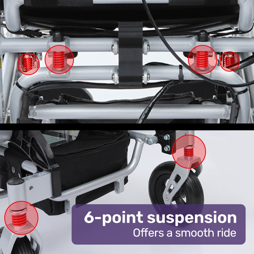 EQUIPMED Power Electric Wheelchair, Folding, Airline Approved, ARTG Certified, Recline Adjustment, Headrest, Aluminium Frame, Lithium Battery