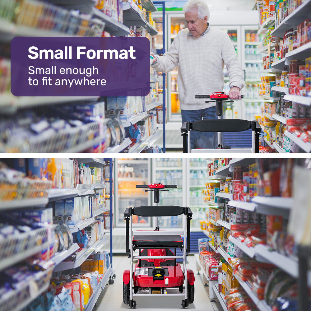 EQUIPMED Ultra-Lightweight Folding Electric Mobility Scooter, 19kg with Battery Removed, 120kg Capacity, Long Range, Brushless Motor, Portable, Red