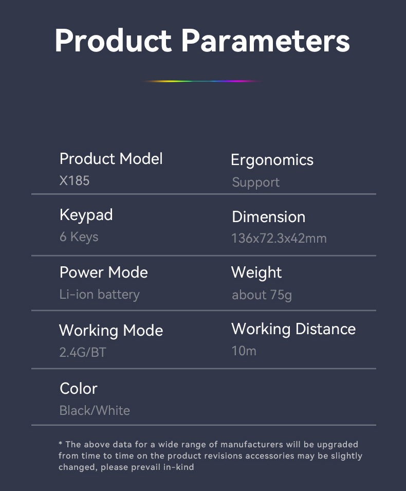 • Working modes: 2.4G wireless and Bluetooth