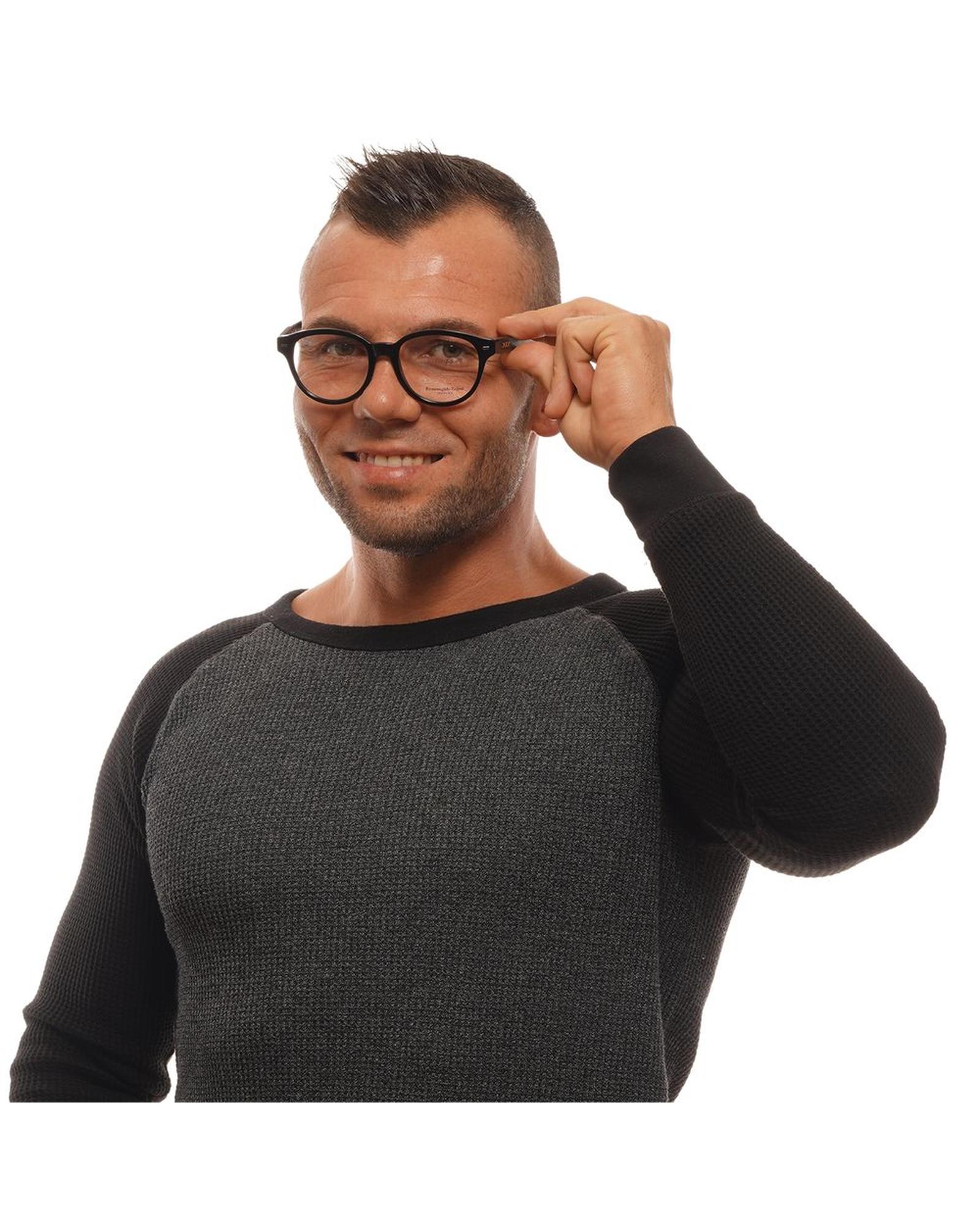 This pair of men’s optical frames features a classic round style with a sleek black design. Made from durable plastic, these frames are lightweight and comfortable for everyday wear. The included demo lenses are suitable for customization, and the design incorporates spring hinges for a flexible fit.