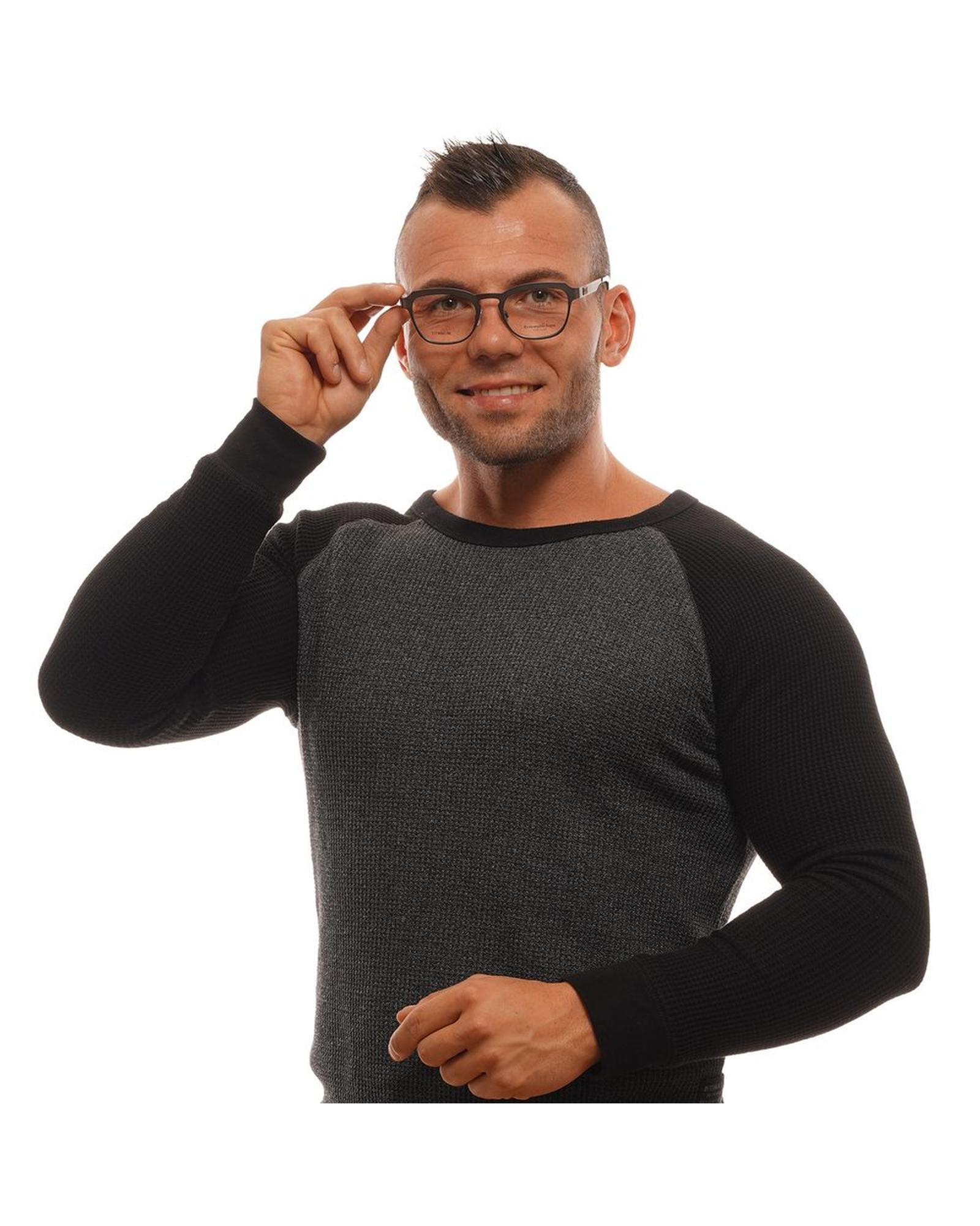 This pair of men’s optical frames features a sleek trapezium style with a full rim design. Crafted from lightweight titanium, these frames offer durability and comfort. The grey color adds a sophisticated touch, making them suitable for various styles and occasions.