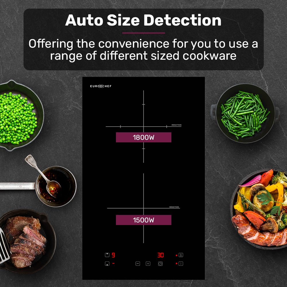 EuroChef 30cm 2 Zone Induction Cooktop, 3300W Electric, Touch Controls