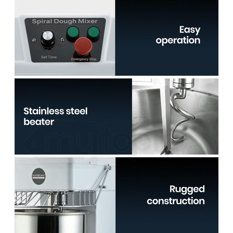 EUROCHEF 30L Spiral Dough Mixer Commercial Machine Bakery Bread Kneader Litre Small