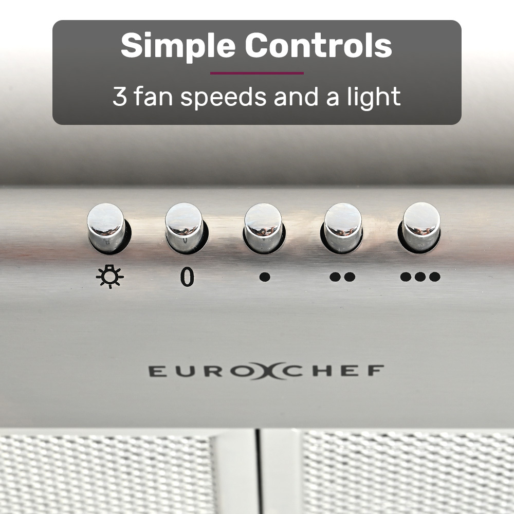 EUROCHEF 60cm Fixed Stainless Steel Rangehood, Quiet 3-Speed, 4-Layer Dishwashable Filters, Halogen Lights EFR60S