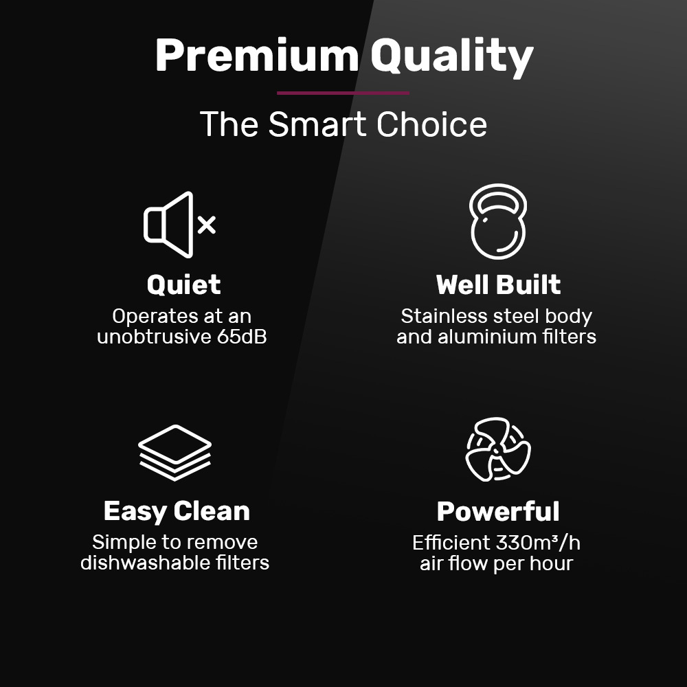 The slideout stainless steel rangehood combines modern design with efficient performance. It features a quiet operation, adjustable airflow, and easy maintenance with washable filters, making it a practical addition to any kitchen.
