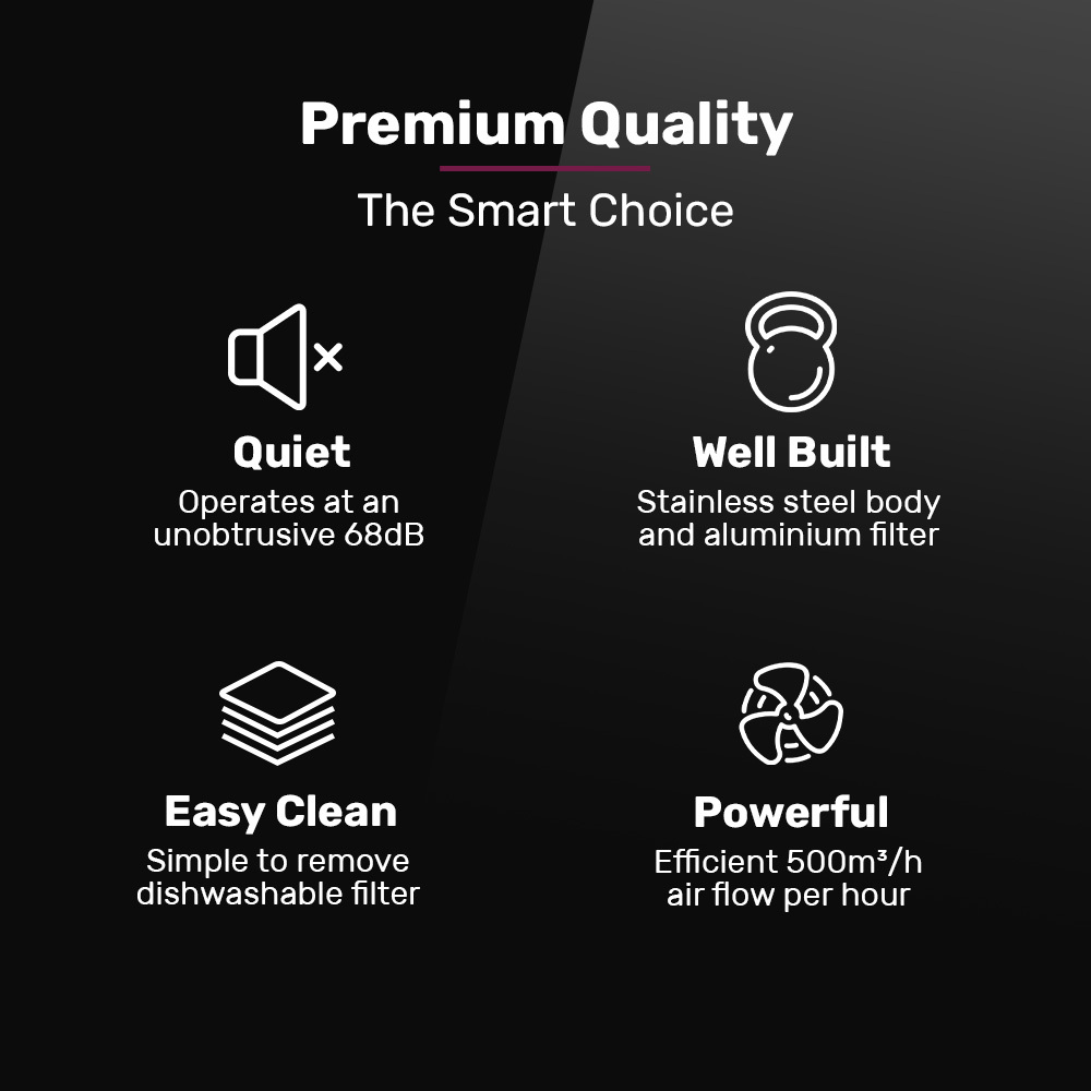 This undermount rangehood features a sleek design that integrates seamlessly into your kitchen. Constructed from durable stainless steel, it offers efficient ventilation with a powerful motor and airflow capacity. The unit operates quietly and includes user-friendly controls, making it a practical addition to your cooking space.