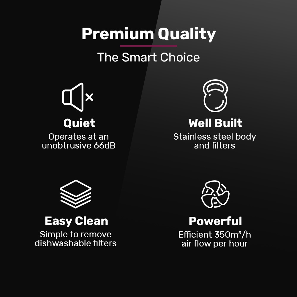- Removable, washable aluminium filters for easy cleaning