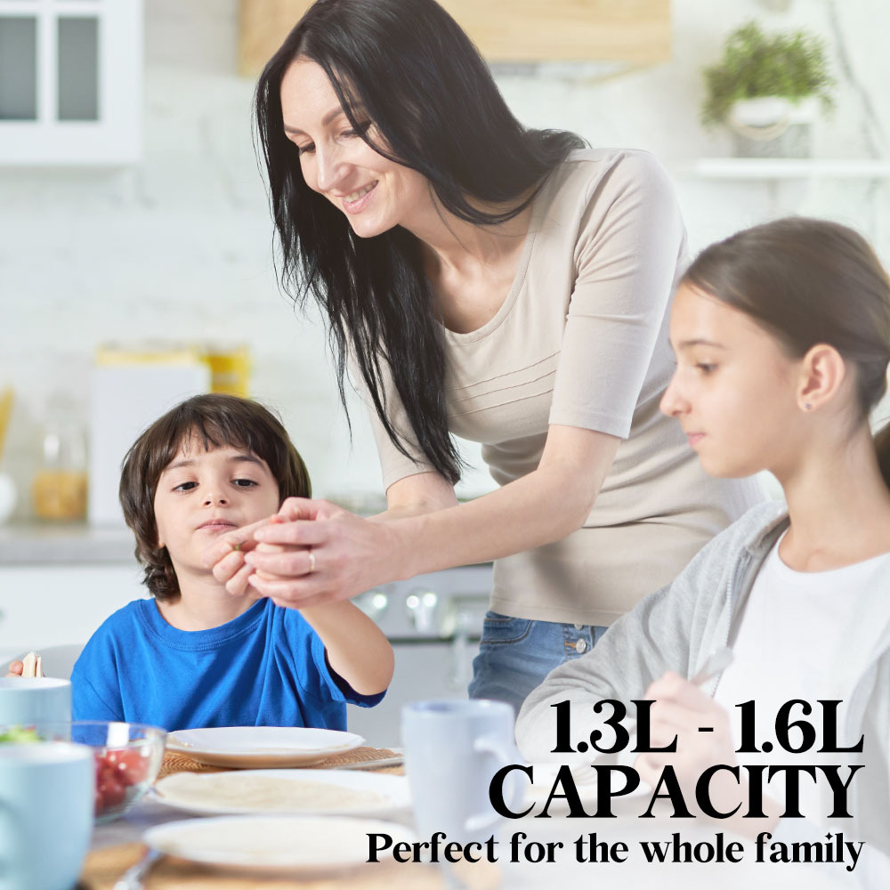 • Large capacity of 1.3 to 1.6 liters, ideal for preparing meals for the whole family or storing leftovers in portions.