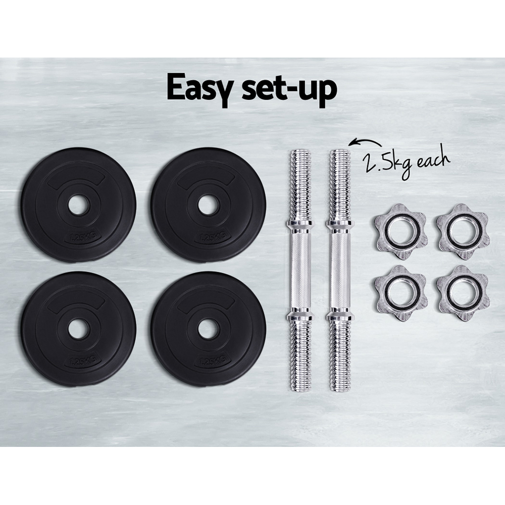 Everfit 10kg Dumbbell Set Weight Plates Dumbbells Lifting Bench