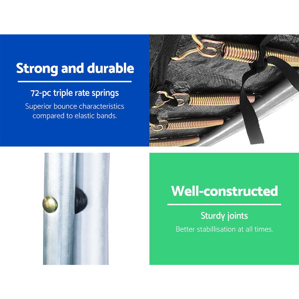 This 12-foot trampoline provides a spacious and safe environment for children to enjoy active bouncing. Designed with durable materials and safety features, it offers a reliable and fun experience for kids over 6 years old.