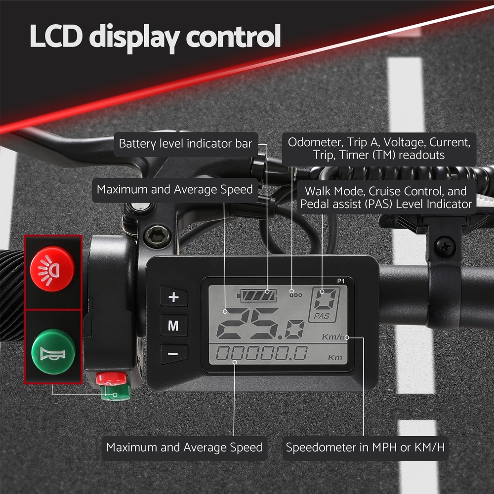 - Maximum speed of 25km/h with a range of up to 60km on a single charge