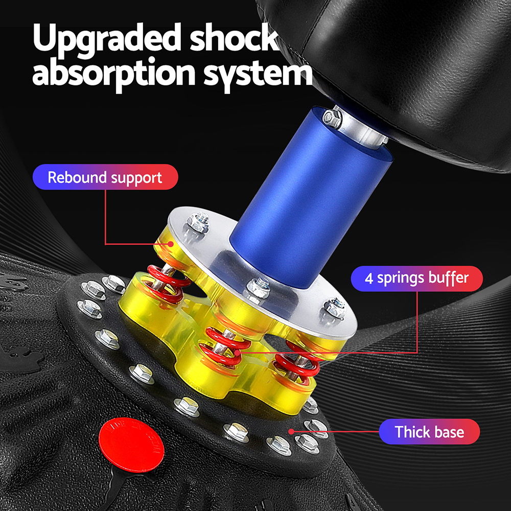 Enhance your home gym with this freestanding boxing punching bag stand, designed for effective training and stress relief. Constructed from durable multi-layered materials, it provides stability and resilience during workouts. The stand features a sturdy base that can be secured with suction cups and filled with water or sand for added stability. Its reinforced shock absorption system with springs reduces vibration and noise, ensuring a smooth punching experience. The high rebound bag quickly returns to its original position, allowing for continuous practice. Easy to assemble and maintain, this equipment is ideal for fitness enthusiasts seeking a convenient boxing training solution.