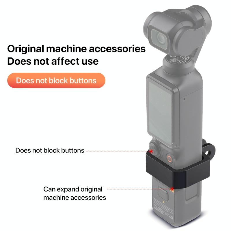 This expansion bracket adapter is designed for use with the DJI Osmo Pocket. Made from high-quality PC materials, it offers durability and comfort during use. The adapter features a built-in anti-slip rubber pad to ensure stability and protect your camera. It can serve multiple functions, including as a cover, bicycle stand, extension pole, tripod, headband, chest strap, or car suction cup, making it a versatile accessory for photography and videography.
