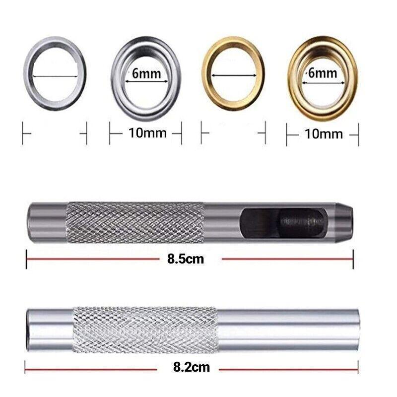 Eyelet Punch Die Tool Kit with 100 Sets of 6mm Grommets for Leather Craft