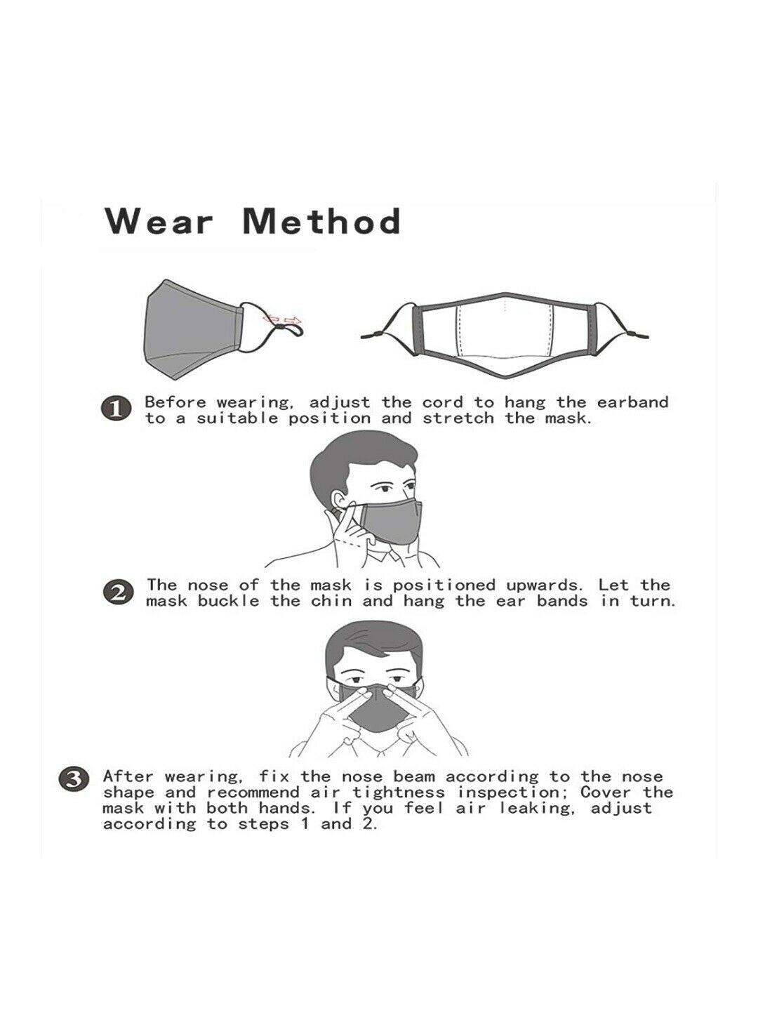 Package Content: One cotton cloth face mask and two PM2.5 carbon filters.