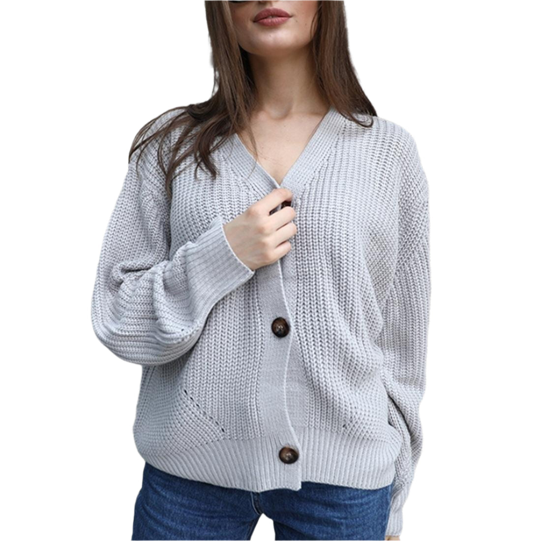 Fashion Cardigan Solid Colour Knit Button Sweater Black – Grey Xl