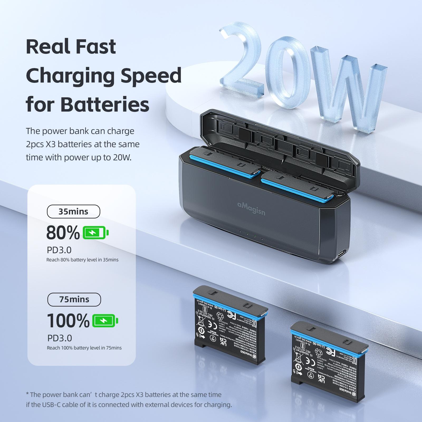 - Reversible USB-C port supporting PD3.0 20W output for fast charging of phones and cameras