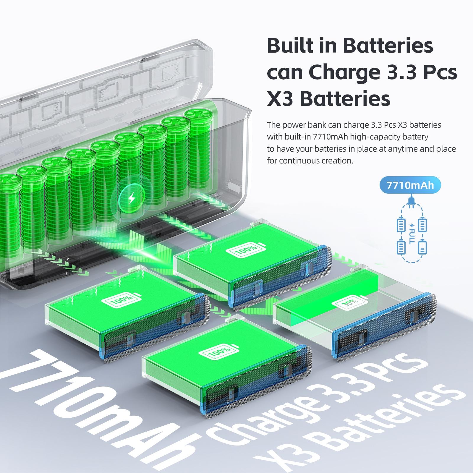 - Built-in high-capacity battery capable of charging about 3.3 batteries