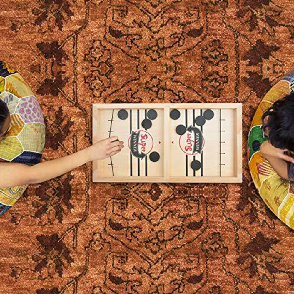 This fast sling puck game is made of high-quality wooden material, providing a durable and eco-friendly surface for family and party entertainment. It is designed to enhance hand-eye coordination and strategic thinking, making it suitable for players of various ages. The game promotes interactive fun and can be enjoyed in different settings such as parties, camping trips, and game nights.