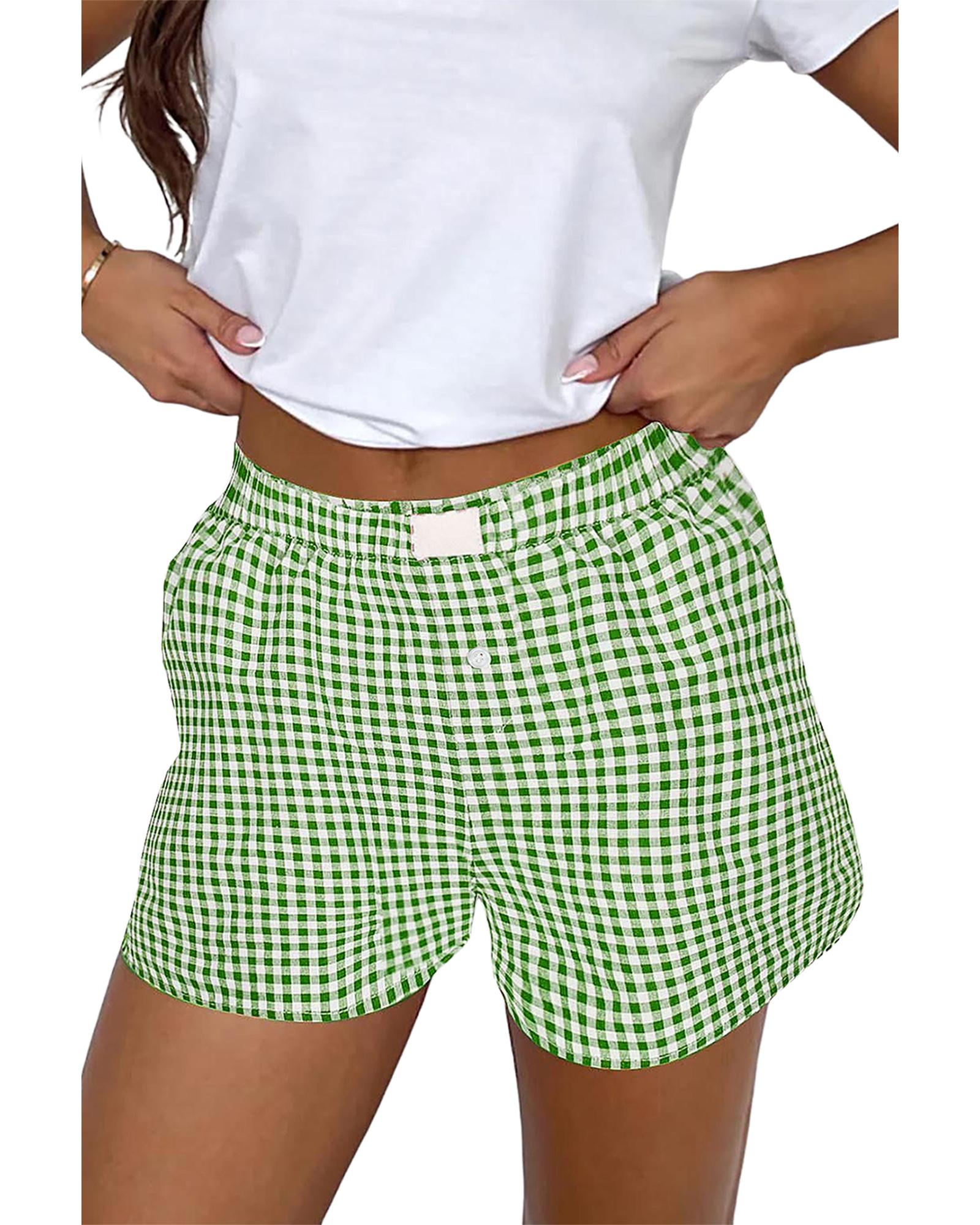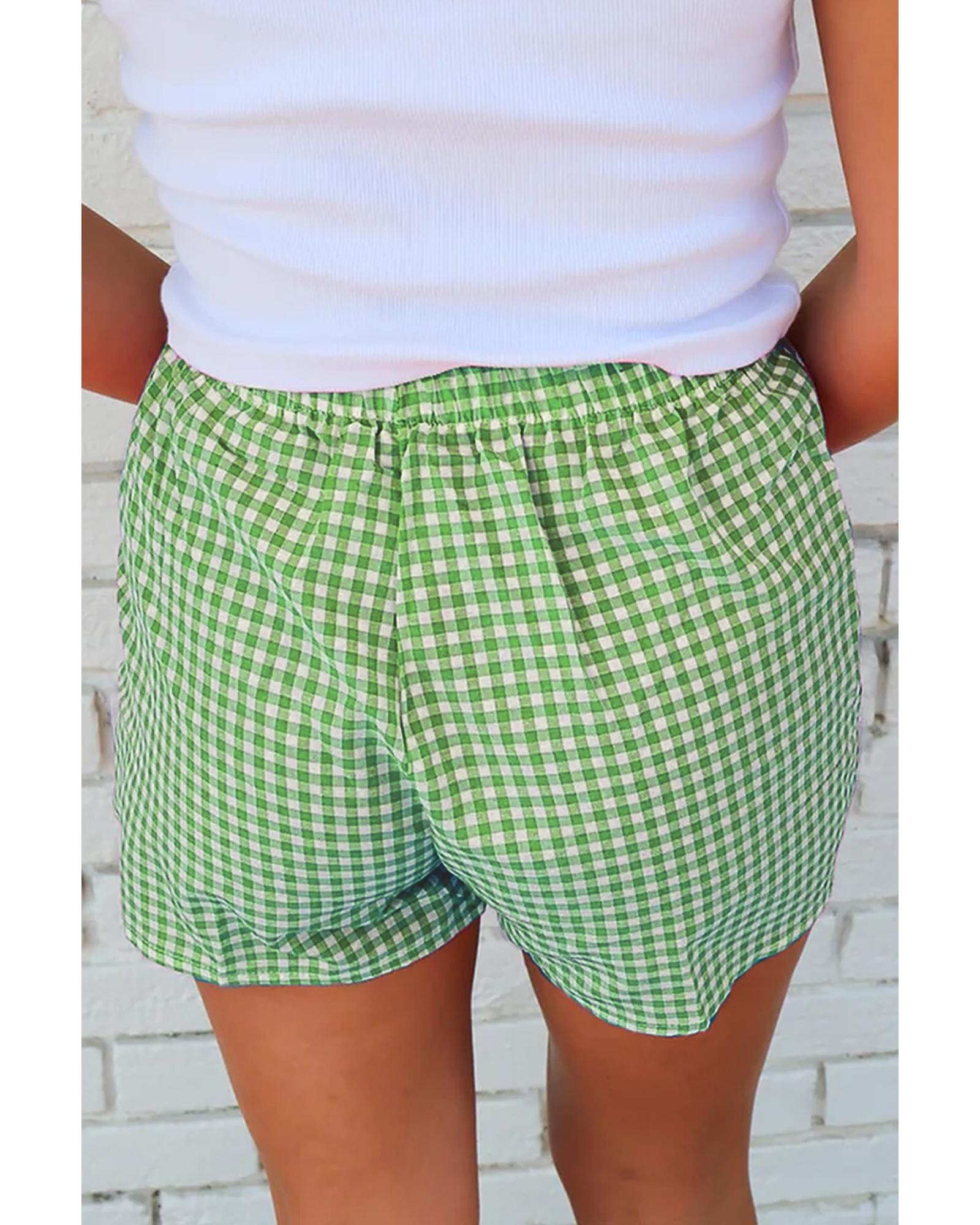 Fern Green Red Plaid Gingham Printed High Waist Shorts – M