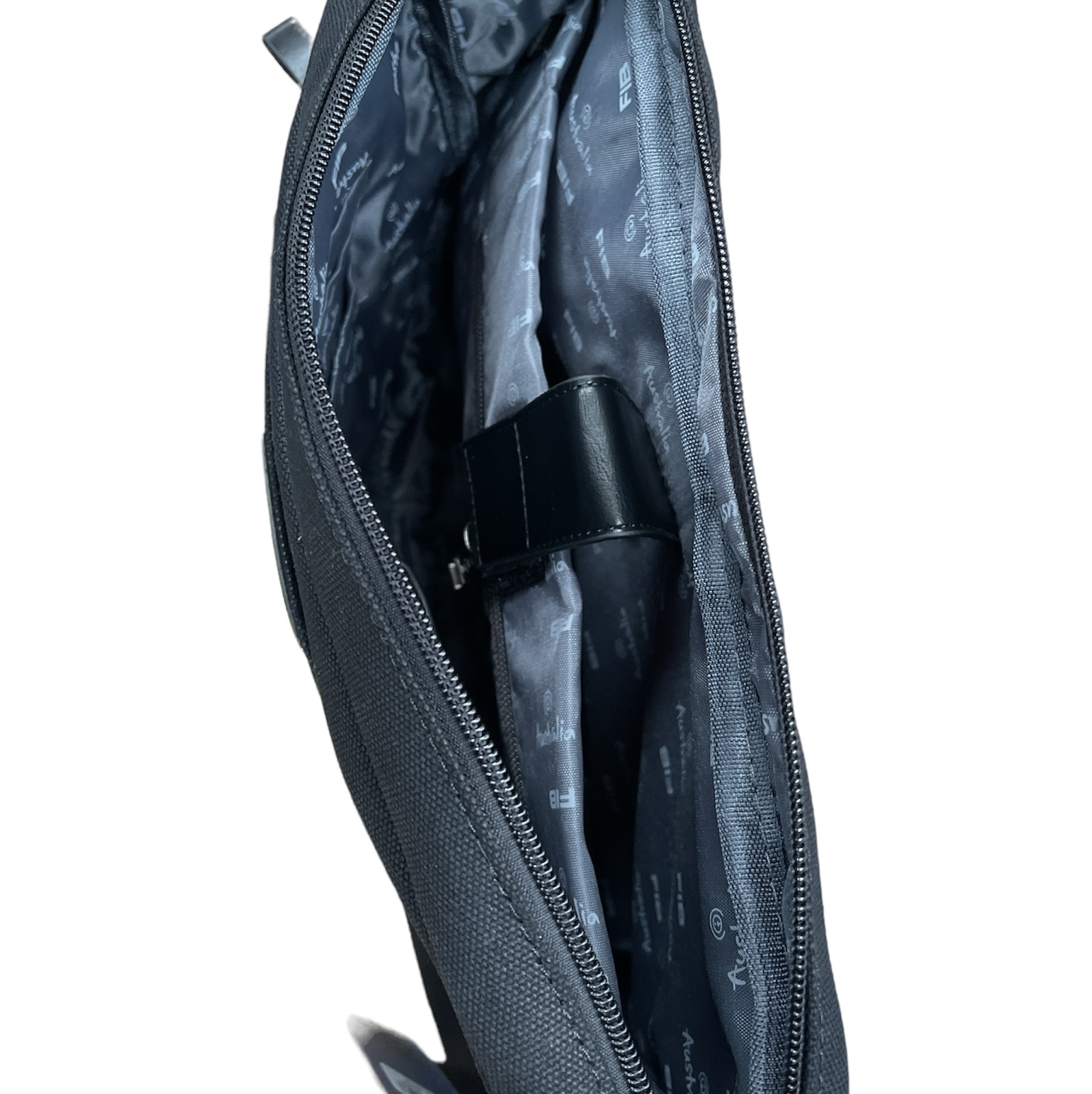 - Multiple compartments including a main section, front and back zipper pockets, and internal organizational features