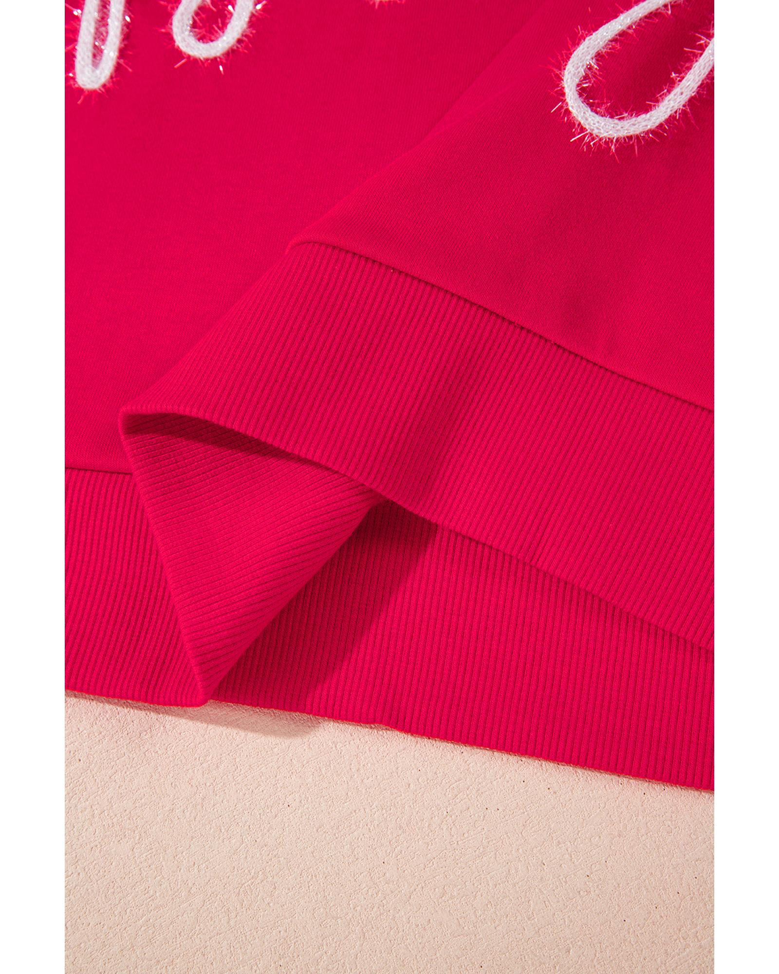 Rose Red Floral MAMA Embroidered Graphic Pullover Sweatshirt - M