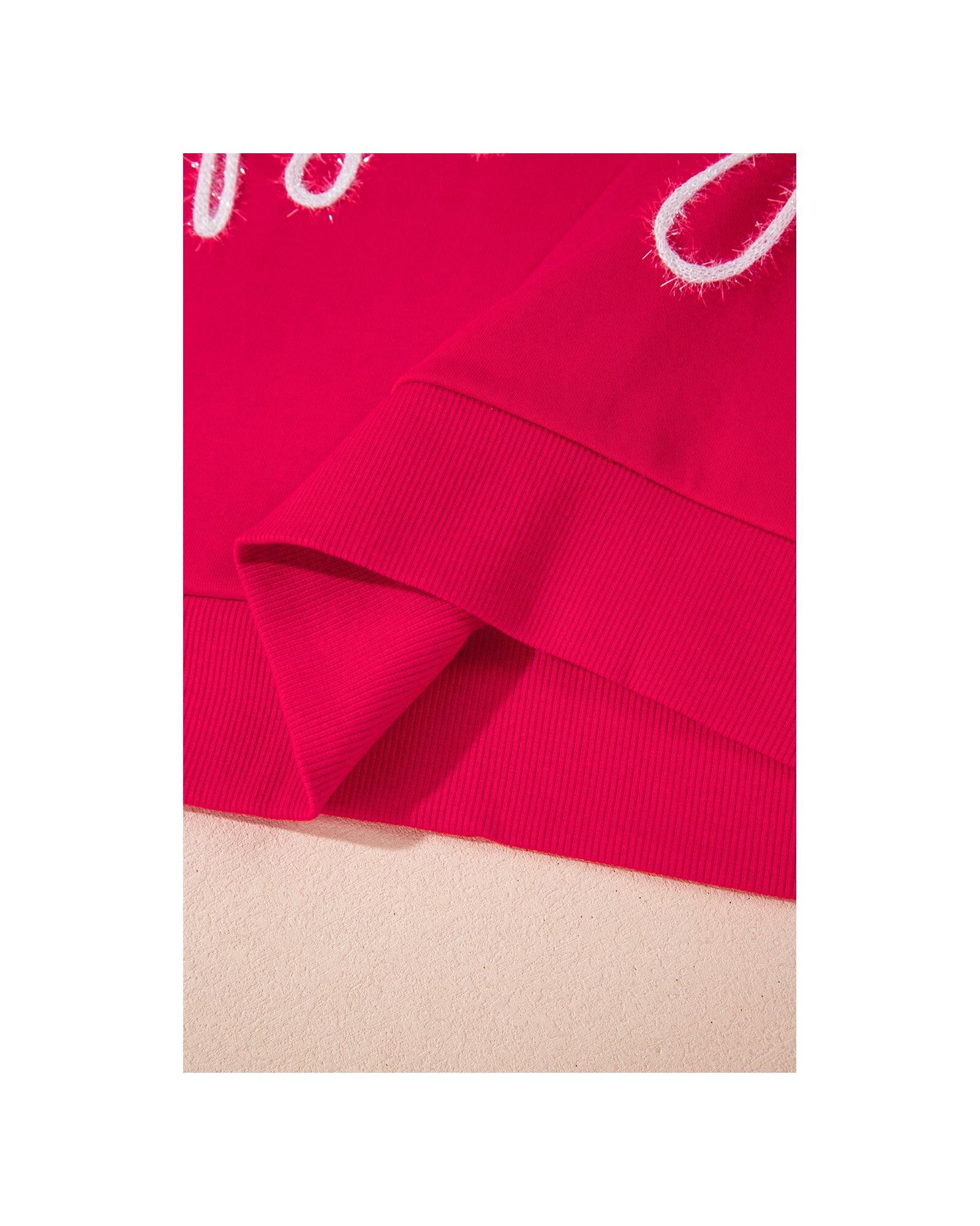 Rose Red Floral MAMA Embroidered Graphic Pullover Sweatshirt - M