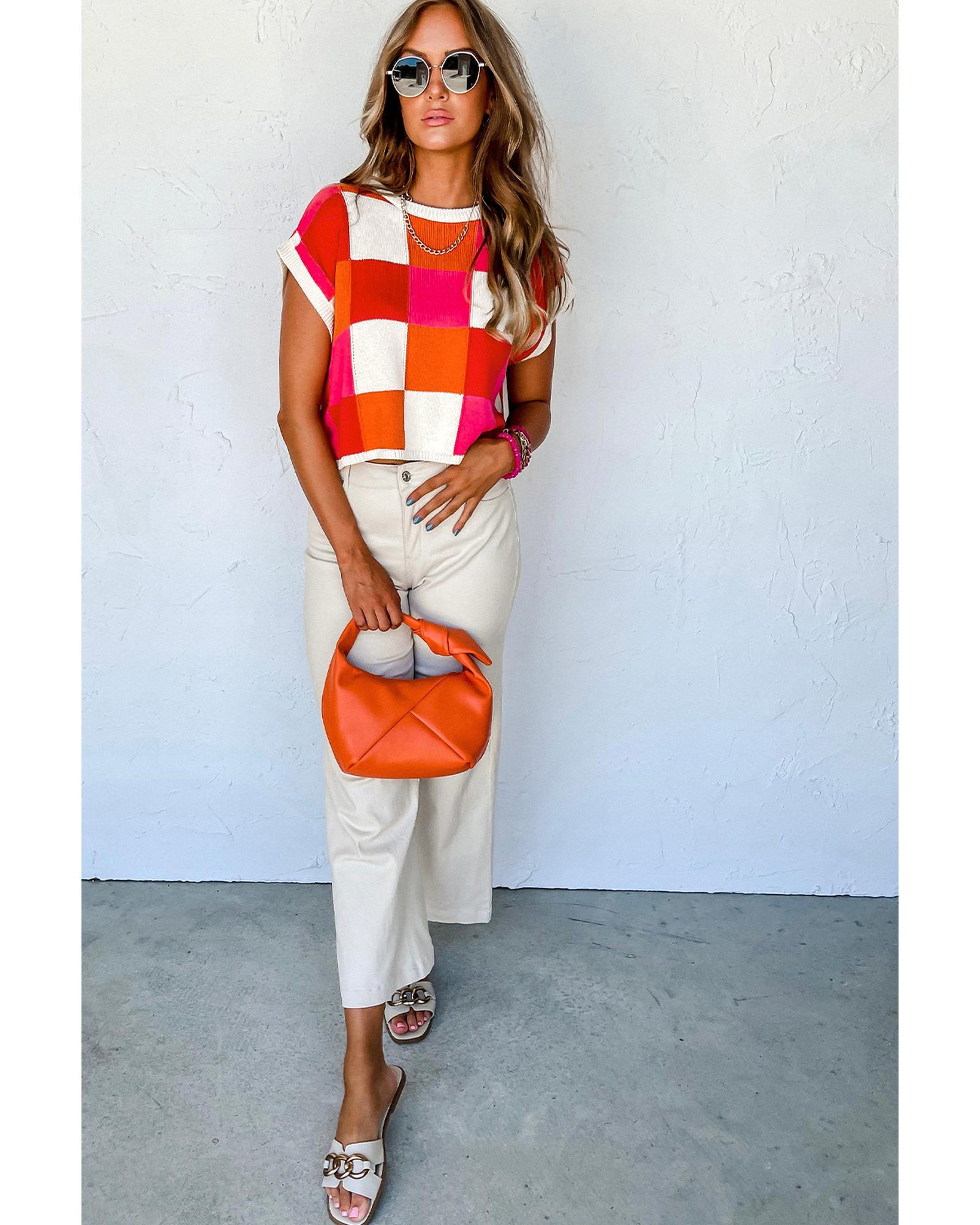 This stylish red color block cap sleeve sweater is designed with a trendy fitted look, making it a versatile addition to your wardrobe. Crafted from high-quality materials, it offers comfort and a fashionable appearance suitable for various occasions.