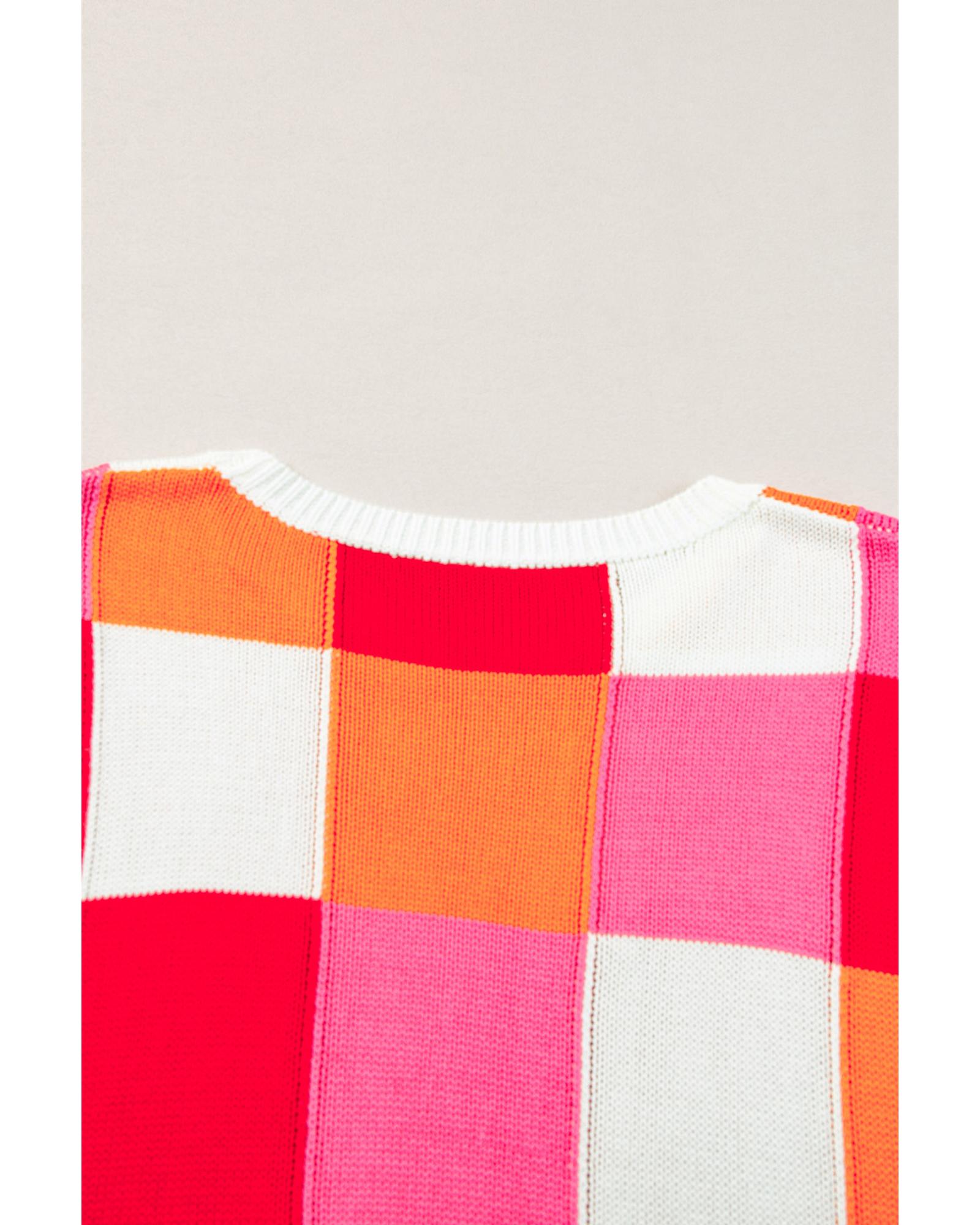 This stylish red color block cap sleeve sweater is designed for a trendy fitted look, making it a versatile addition to your wardrobe. Crafted from high-quality materials, it offers comfort and a fashionable appearance suitable for various occasions.