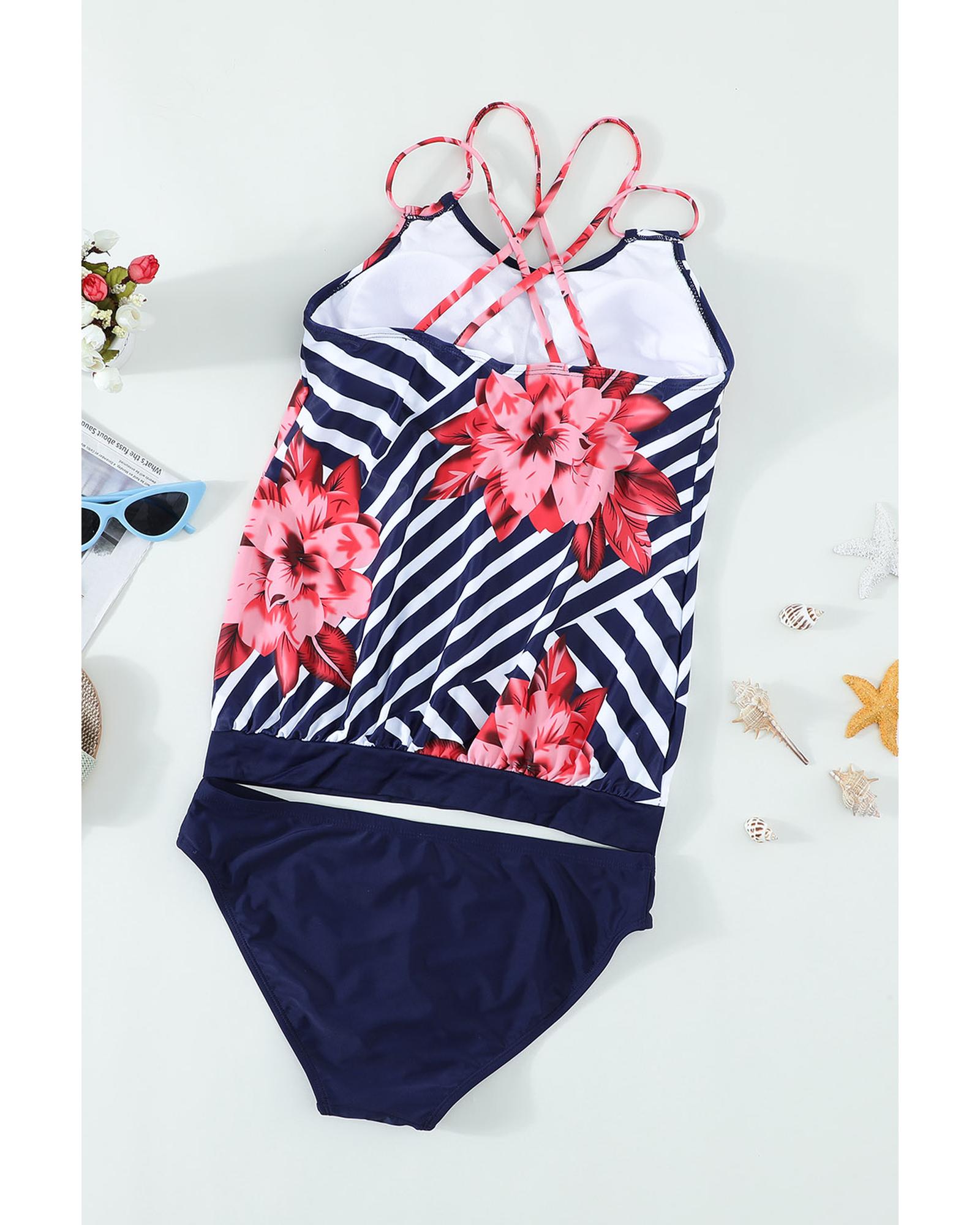 This vibrant red floral print criss-cross hollow-out tankini swimwear offers a stylish and comfortable option for your beach or poolside outings. Designed with a trendy fitted silhouette, it combines support and fashion to enhance your curves while providing coverage and confidence.