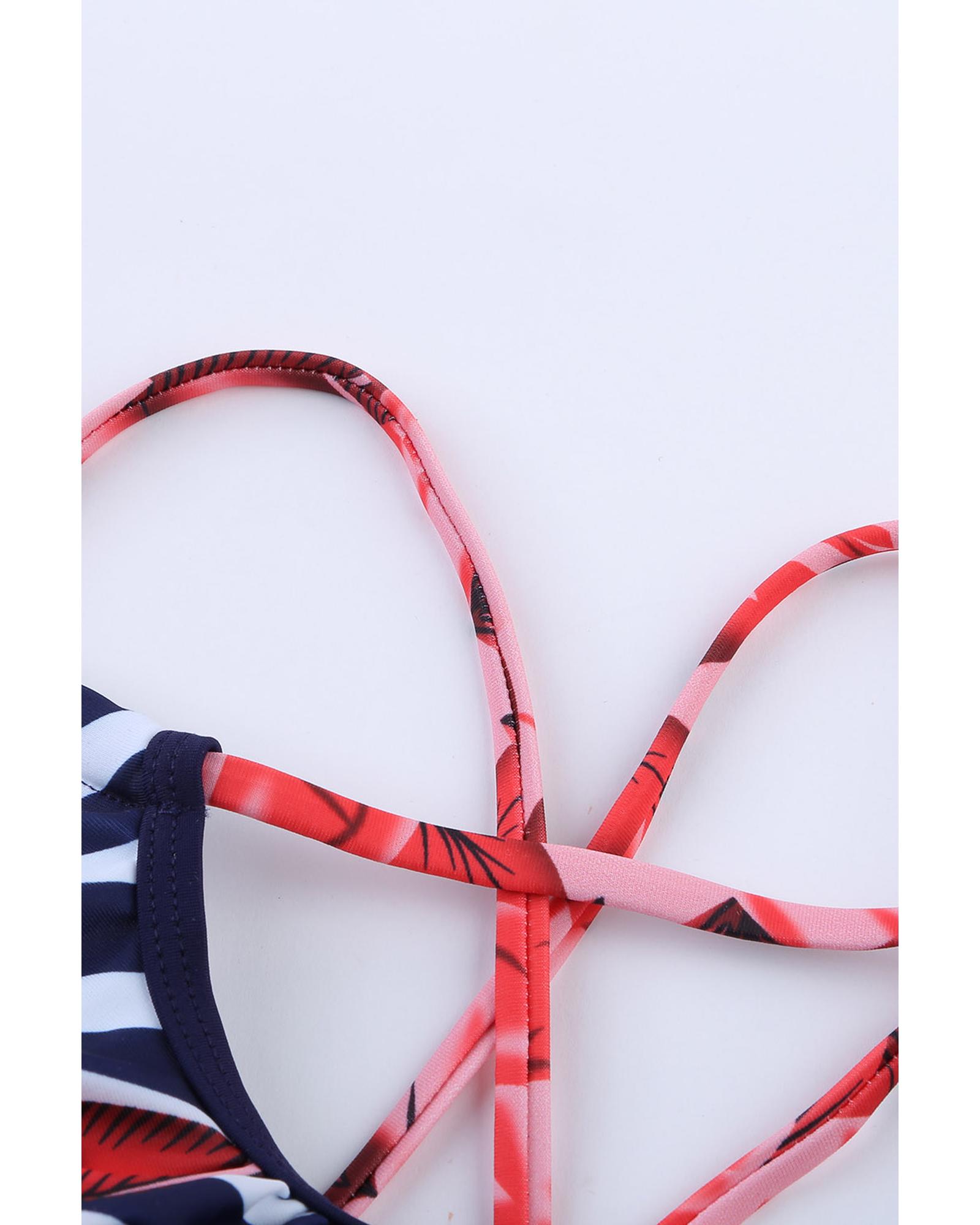 This vibrant red floral print criss-cross hollow-out tankini swimwear offers a stylish and comfortable option for your swimwear collection. Designed with a trendy fitted look, it combines flattering style with functional support, making it suitable for various body types and occasions.