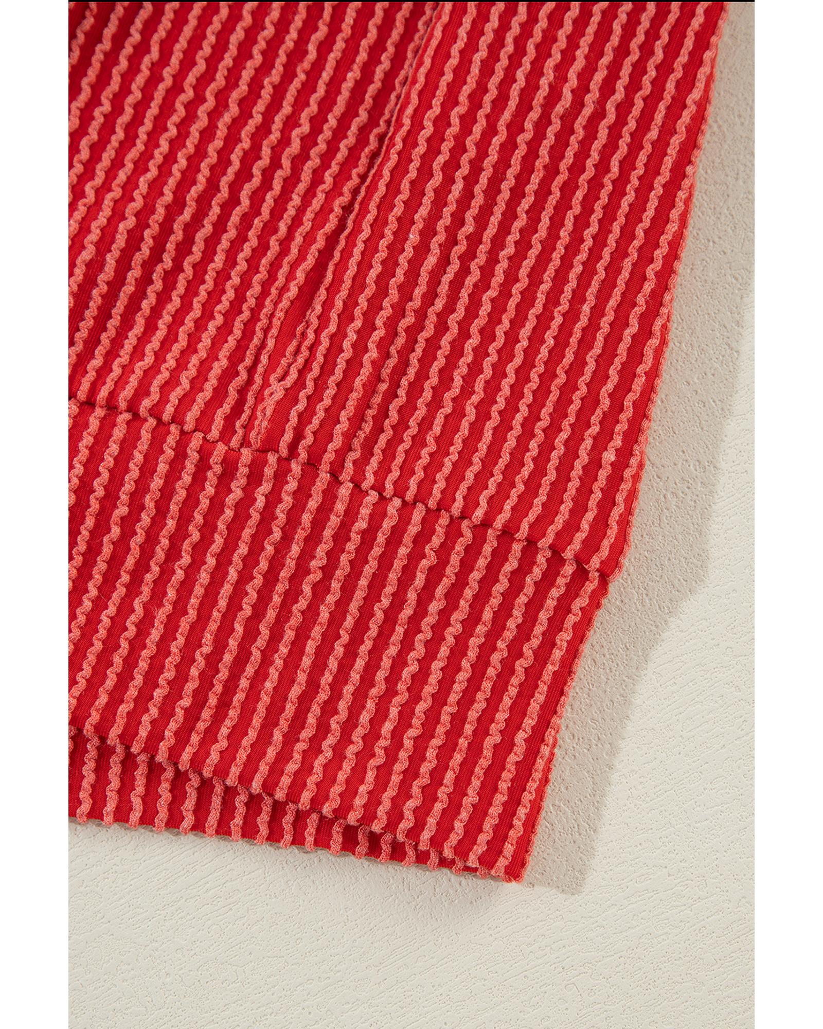 This long sleeve top and pants set features a vibrant red color with a stylish pattern, designed for both comfort and fashion. It is suitable for daily errands or relaxing at home, offering a trendy fitted look that complements various casual occasions.