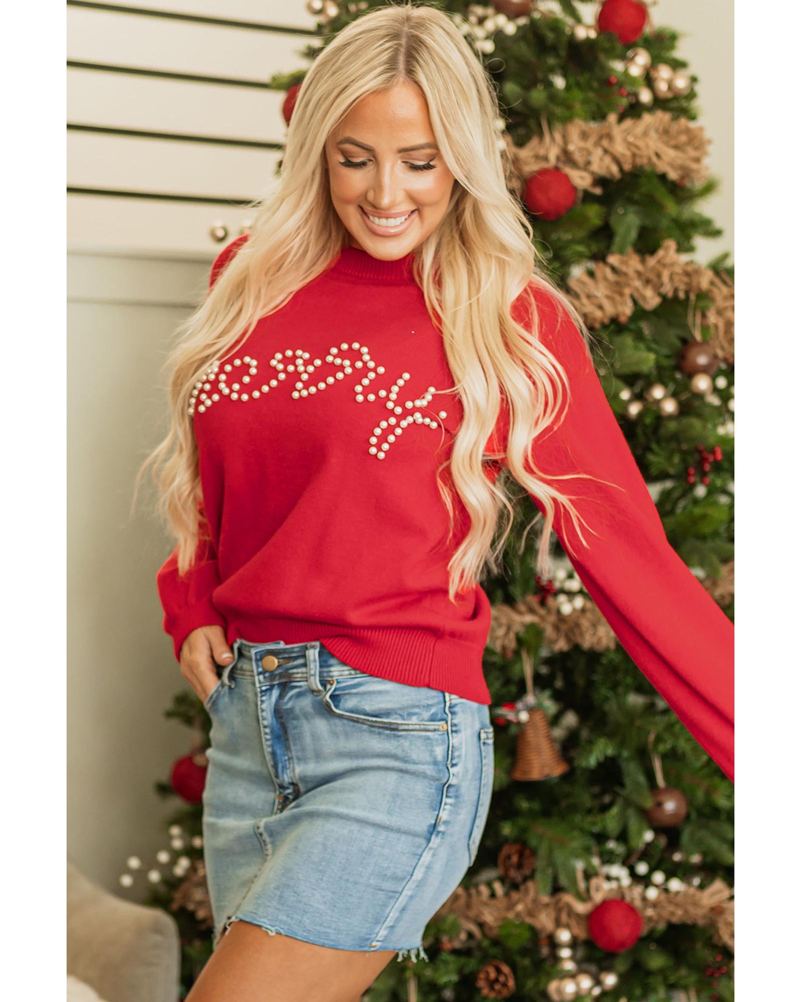 This festive red pearl beaded sweater combines a cheerful holiday pattern with elegant pearl accents, making it a perfect choice for the holiday season. Designed with a trendy fitted silhouette, it offers both style and comfort, ideal for staying cozy during chilly winter days.
