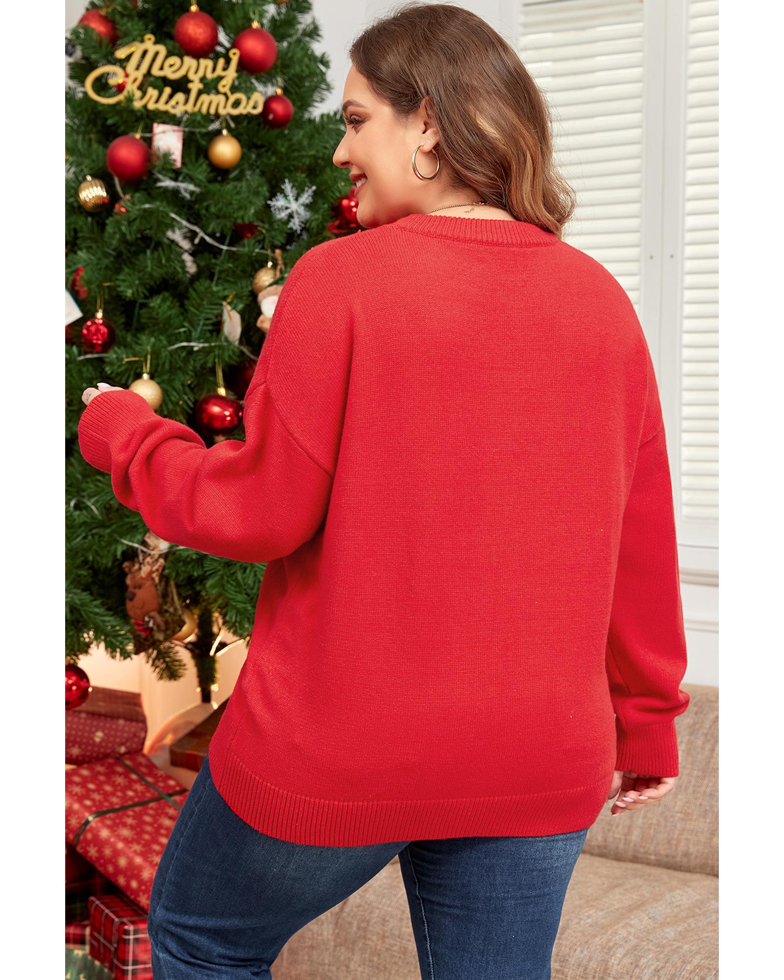 Fiery Red Tinsel merry Pattern Drop Shoulder Plus Size Sweater – 3X