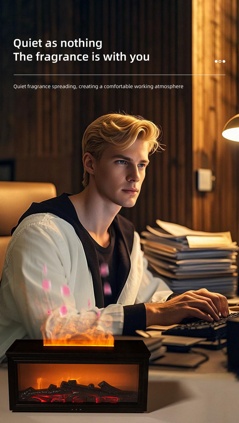 This device combines an aroma diffuser and humidifier with a fireplace flame effect, creating a cozy and relaxing atmosphere in any room. It features adjustable lighting, multiple timer settings, and a remote control for easy operation. The large water tank allows for extended use, and the ultrasonic technology produces a fine mist that disperses fragrance without wetting surfaces.
