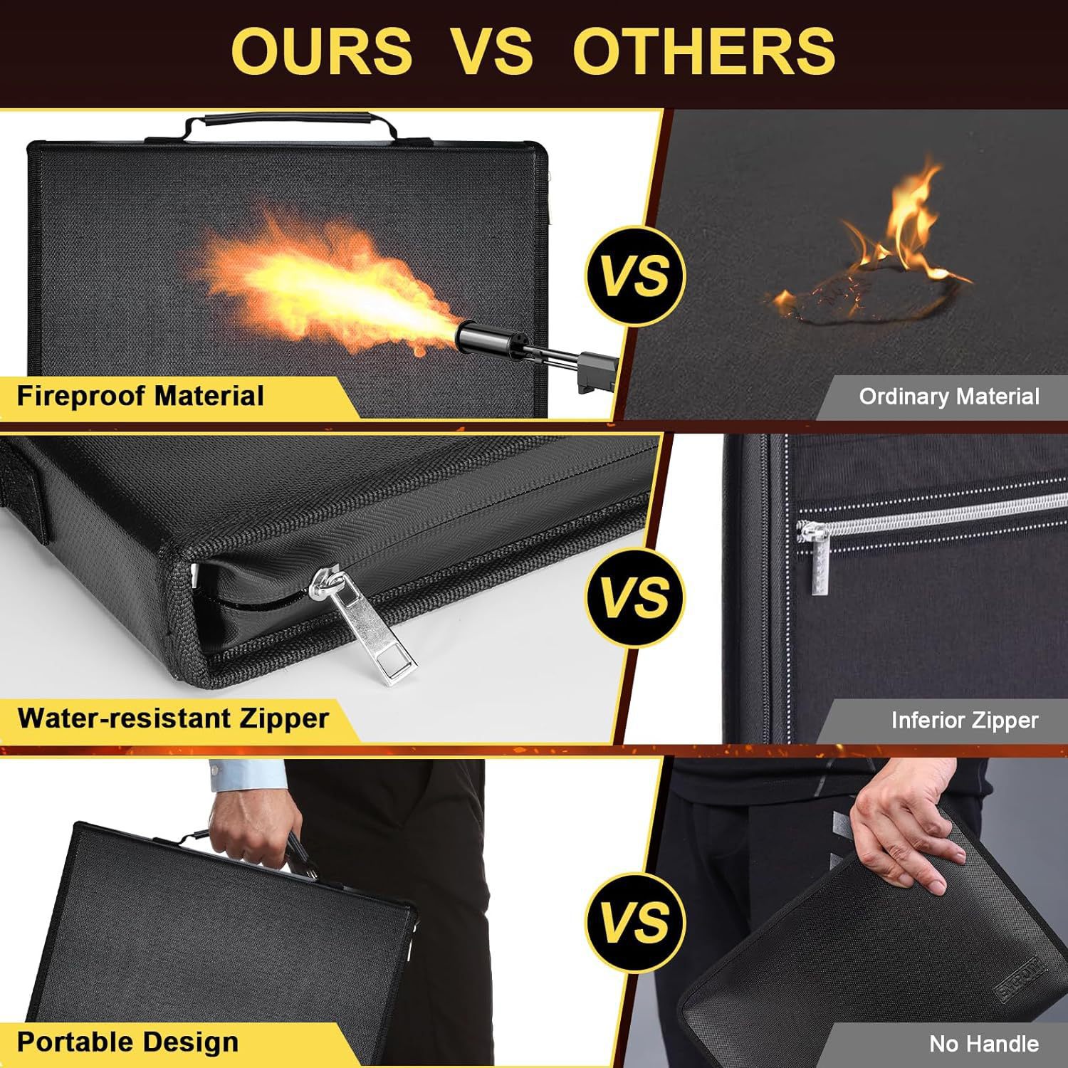 Fireproof & Waterproof Expanding File Folder Organizer with Zipper – Large Capacity Document Safe Bag(Black no-handle model)