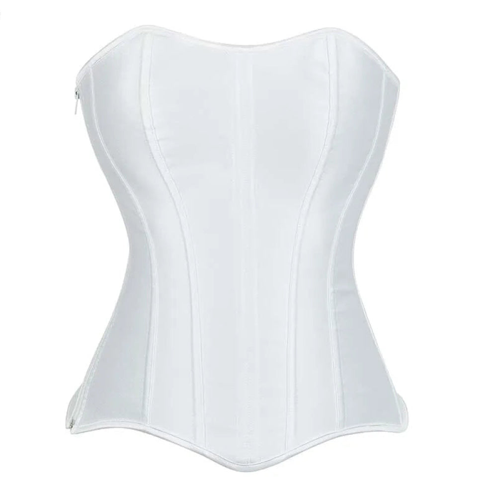Fish Bone Supported Black White Bridal Bustier Corset Top Plus Size With Zip – White – Xl