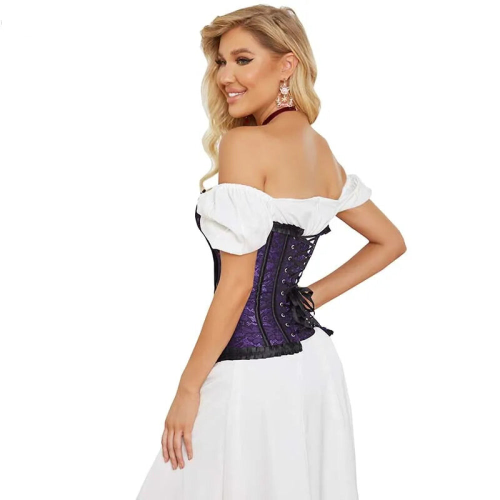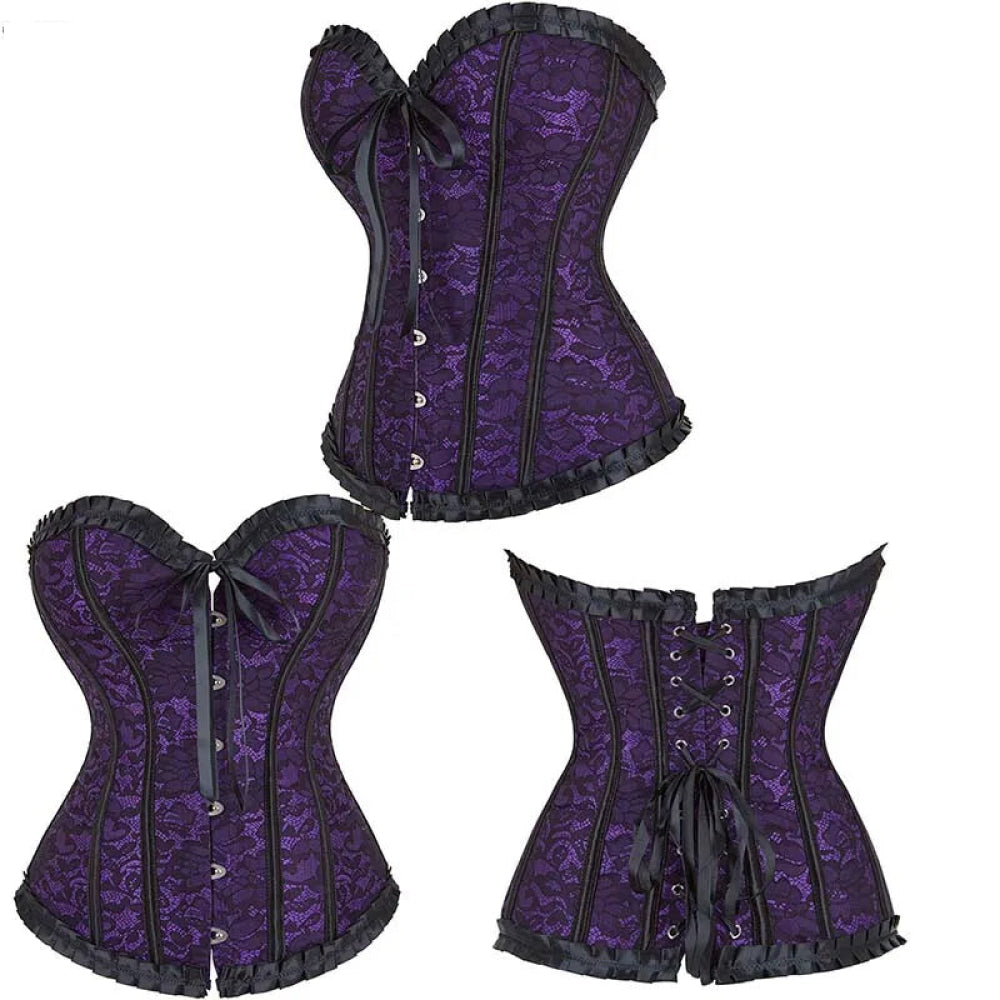 Fishbone Bow Tight Chest Binder Bustier For Gothic Dress Women 10 Red Purple Ruffled Lace Victorian Corset Top – Red – 4Xl