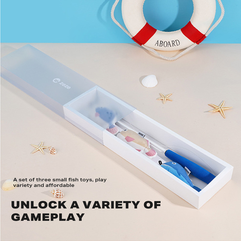 This cat teasing toy set includes a lightweight, adjustable fishing rod and multiple fish toys. The rod is designed to be portable and easy to handle, making it ideal for engaging your cat’s attention and encouraging active play. Crafted from high-quality, elastic, and durable plastic materials, it ensures safe and enjoyable use for your pet.