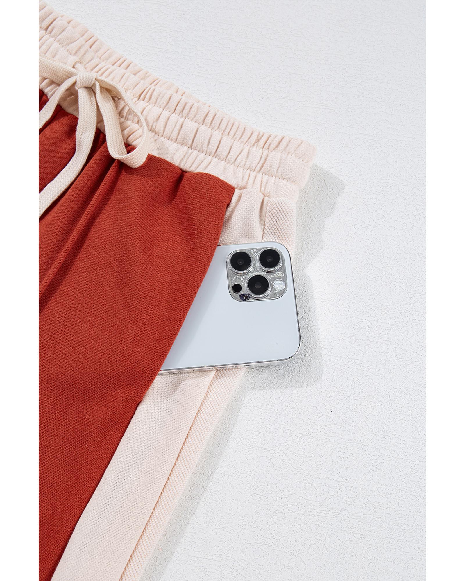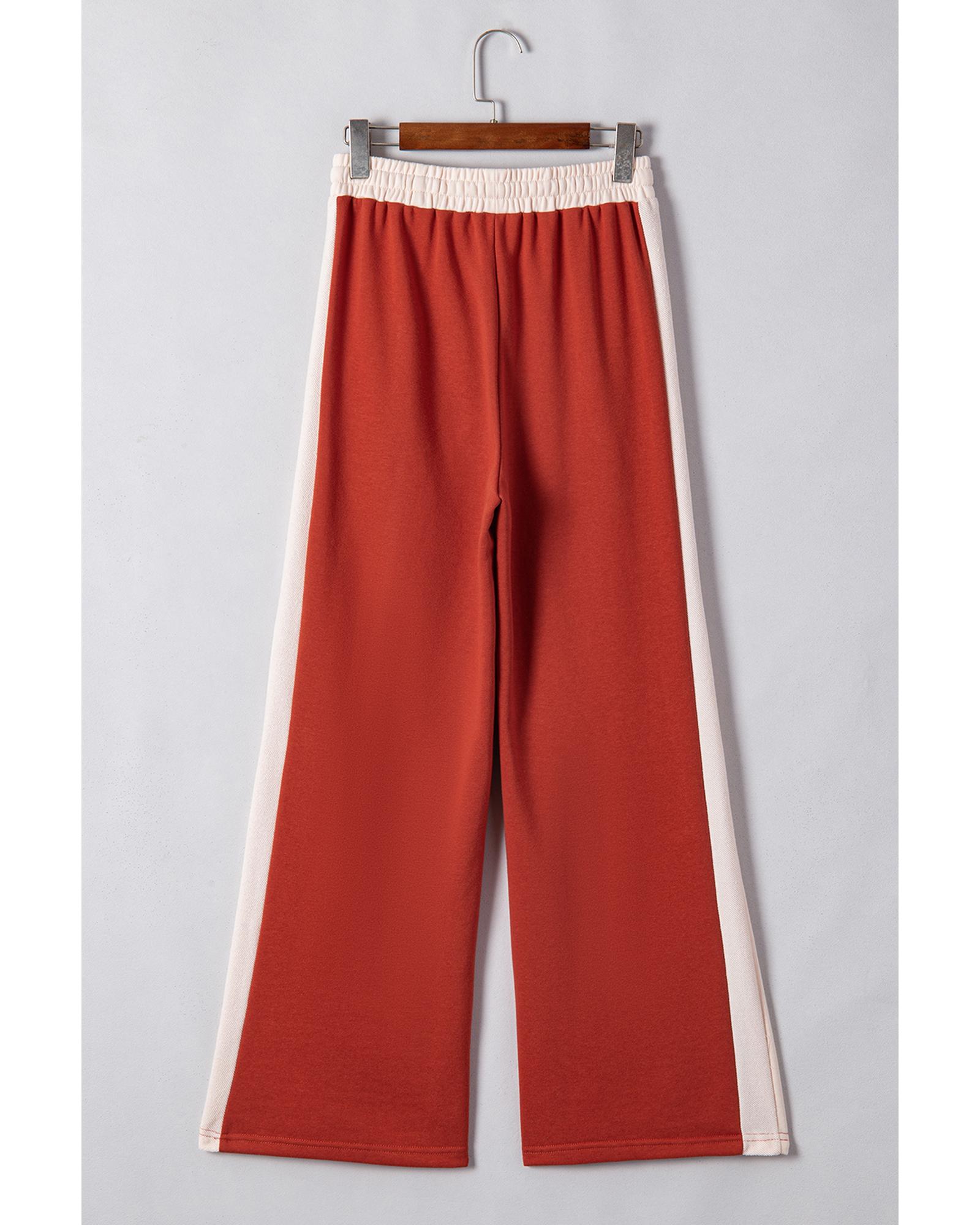 These high waist wide leg pants feature a vibrant color block design, combining modern style with comfort. The adjustable drawstring waistband and relaxed fit make them suitable for various casual occasions, offering both fashion and ease of wear.