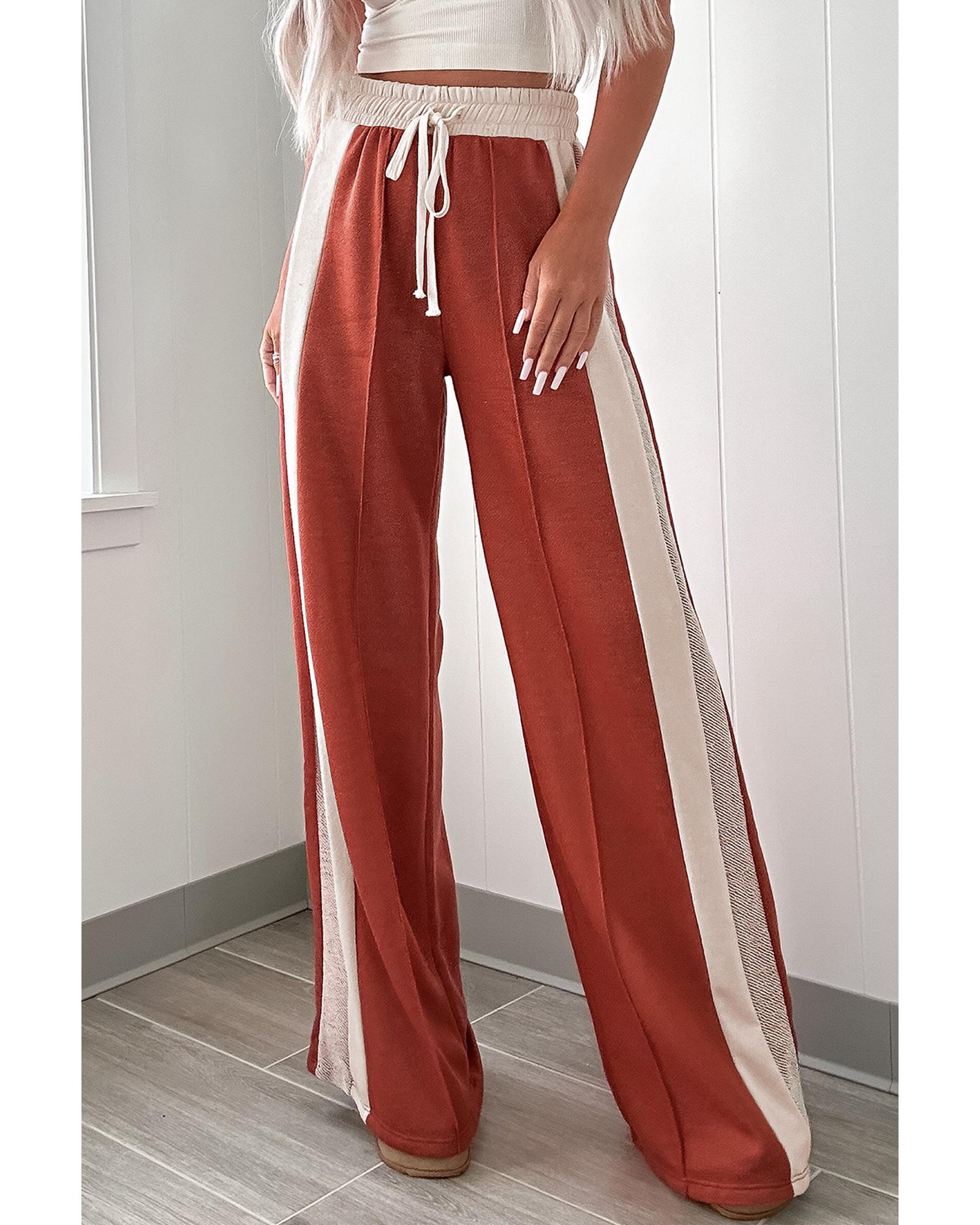 Flamingo Color Block Drawstring High Waist Wide Leg Pants – XL