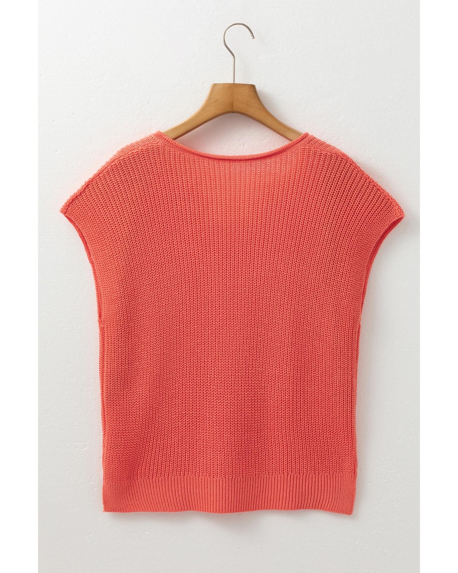 Fiery Red Solid Textured Knit Side Pockets Buttoned Sweater Vest - L