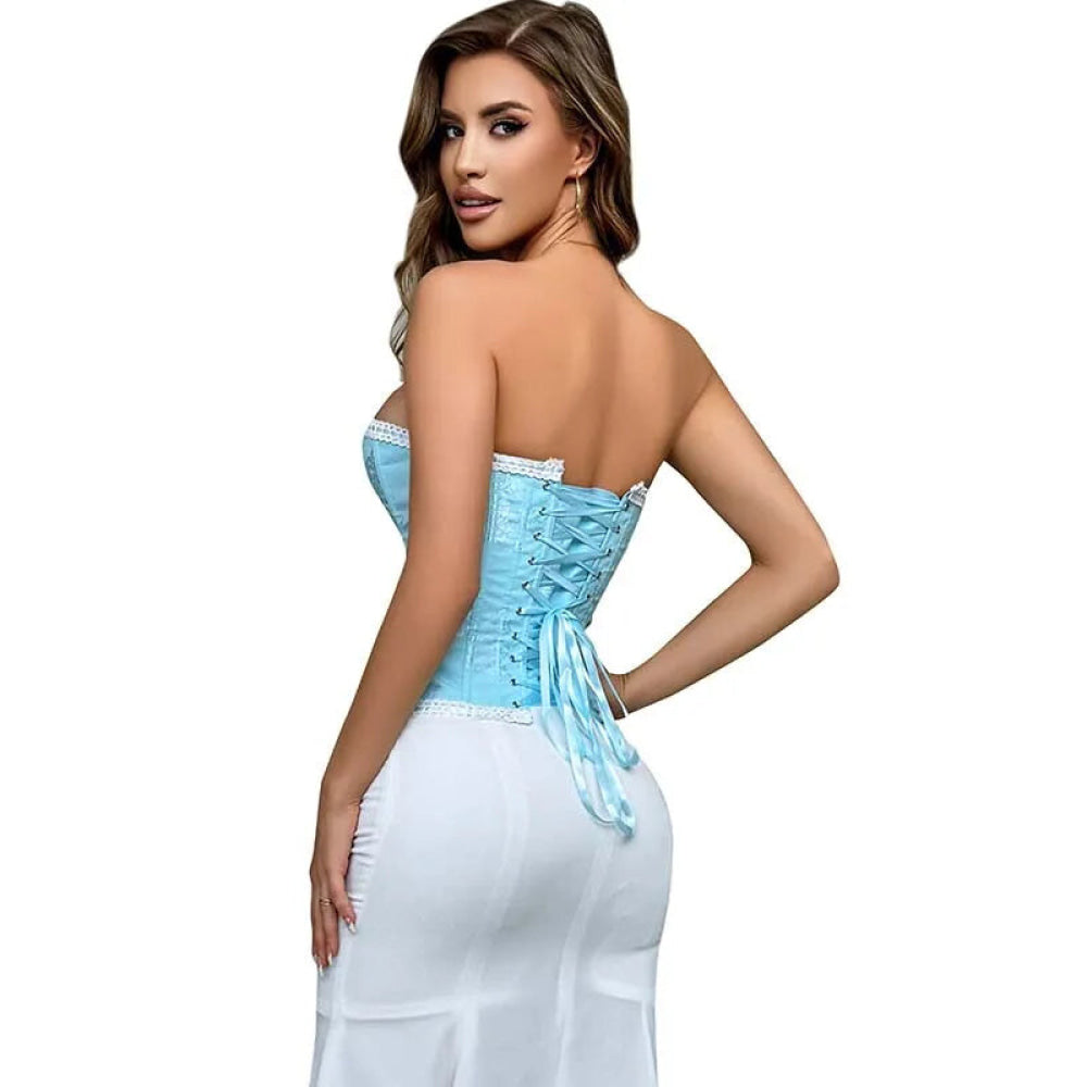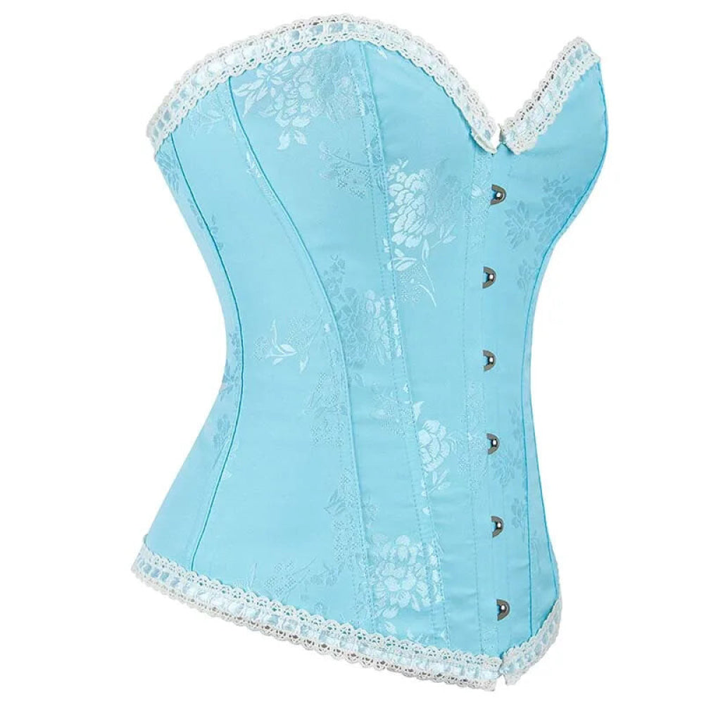 Floral Jacquard Ruffled Boned Corset Top Plus Size Xs-Xxxl Sky Blue Wedding Bridal Body Shapewear – L