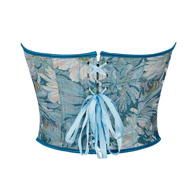 Vintage Lace-Up Denim Corset With Thong Plus Size S-Xxl - Green - L Original price was: $70.99.Current price is: $38.99.