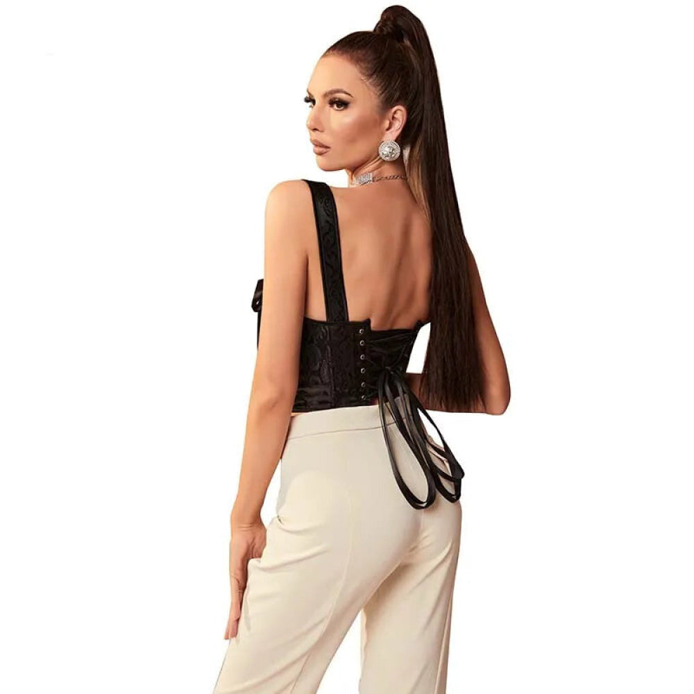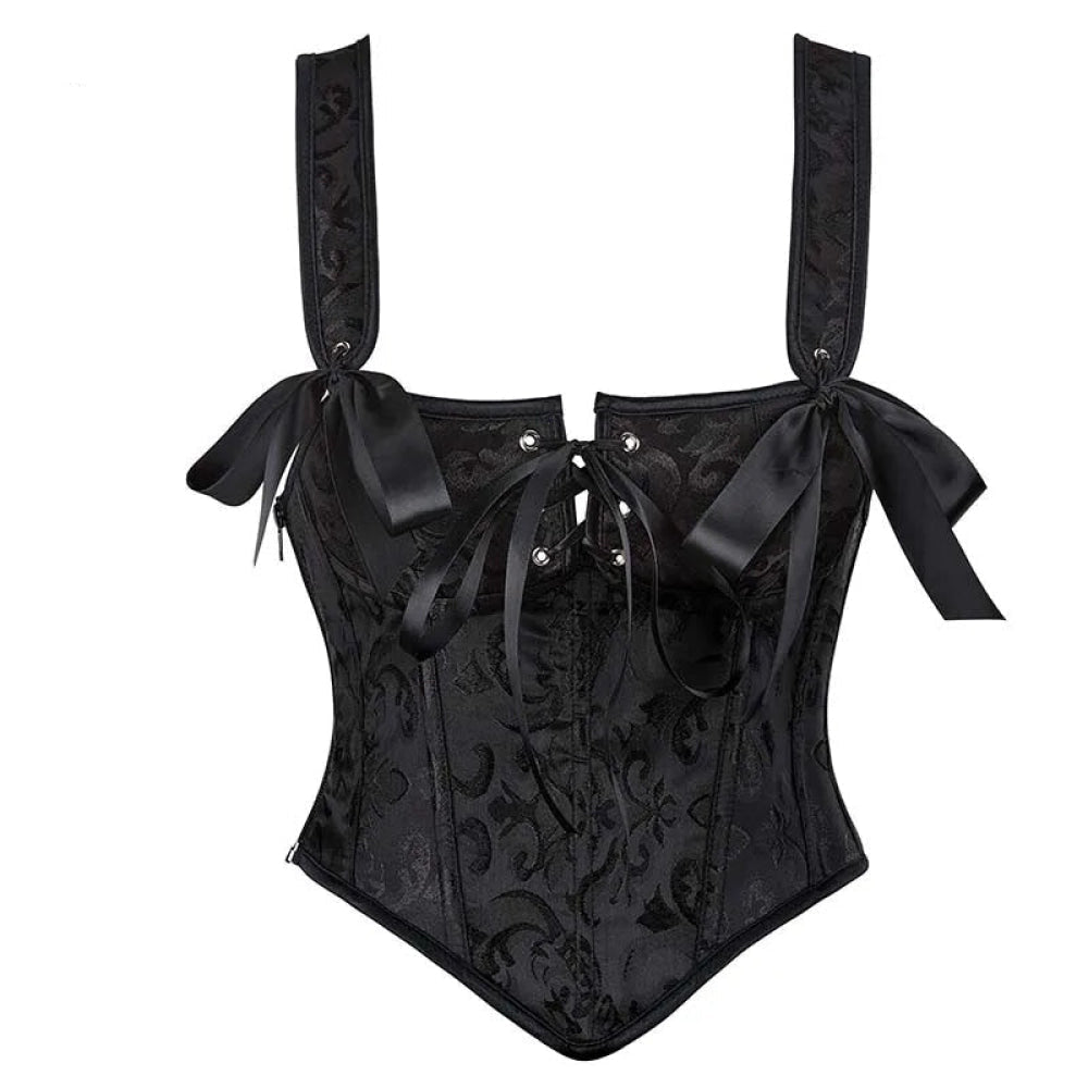 Floral Lace-Up Gothic Crop Top Sleeveless Boned Corset With Strap – Xxl