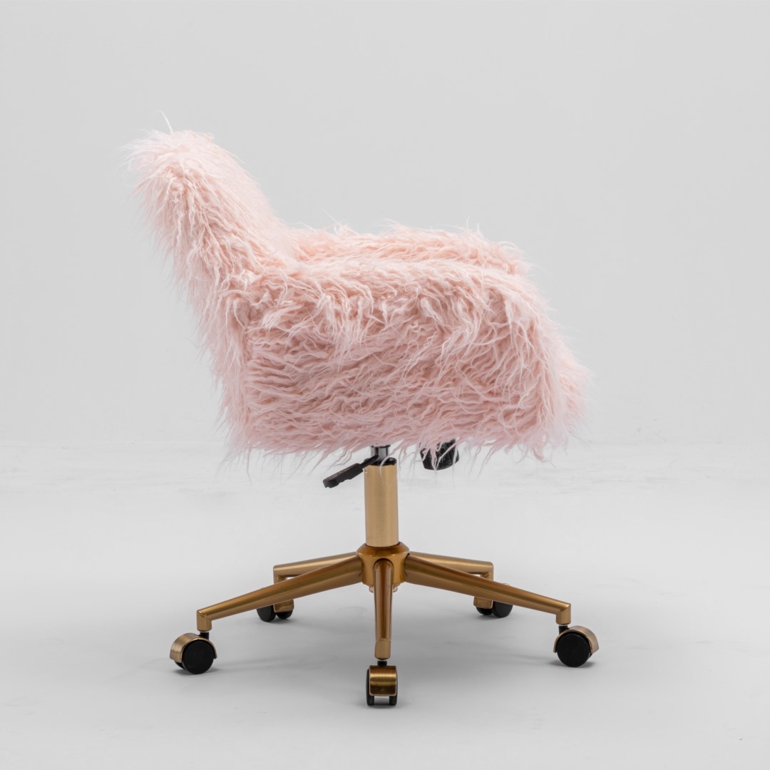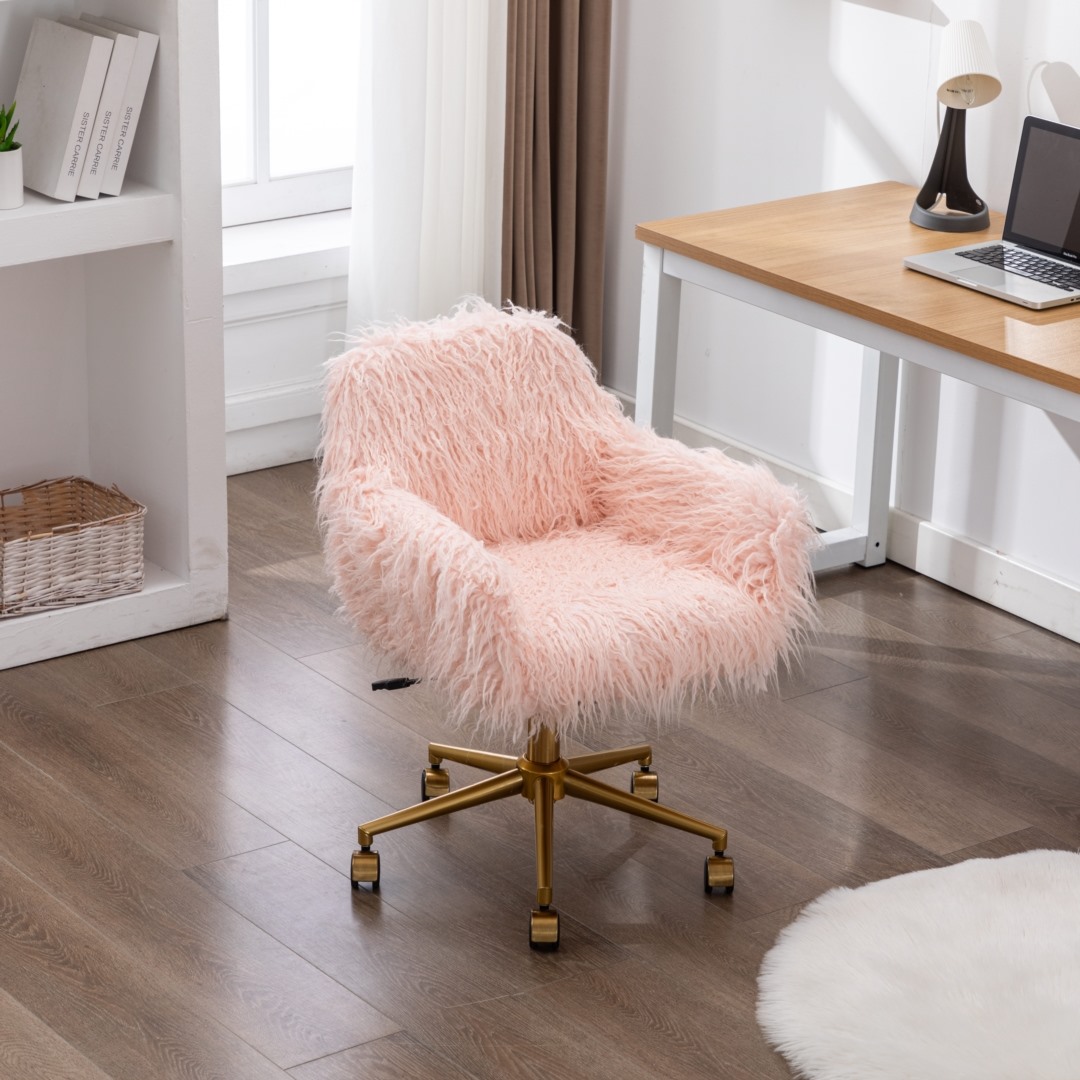 Fluffy Office Chair Faux Fur Modern Swivel Desk Chair for Women And Girls-Pink