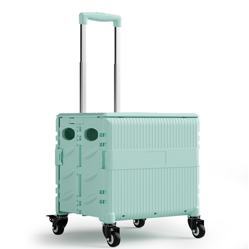 Foldable Rolling Storage Cart with Telescopic Handle – Large Capacity, Portable Utility Box 45L Green