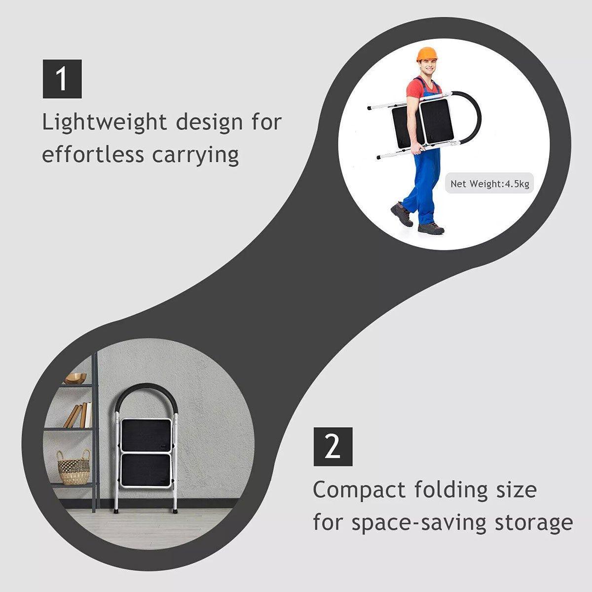 This folding multi-step ladder is a portable and practical tool suitable for various household tasks. Its sturdy iron construction and A-type design provide stability and support. The built-in handrail offers additional safety, while the non-slip wide steps ensure comfortable and secure climbing. The ladder’s lightweight and foldable design make it easy to transport and store, making it ideal for indoor and outdoor use.