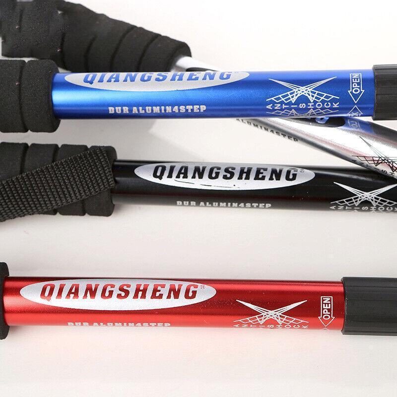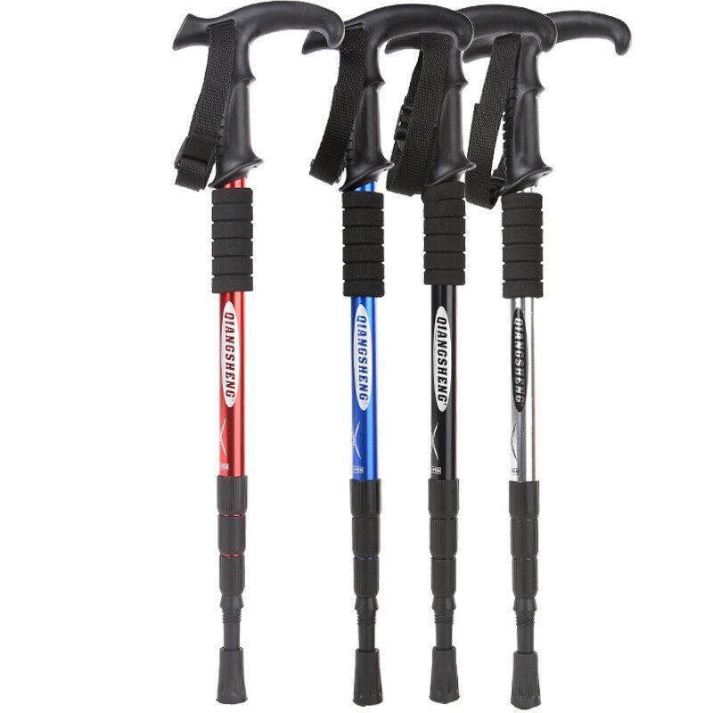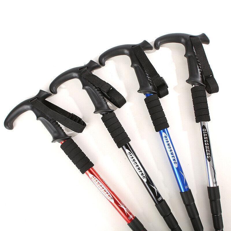 Folding Walking Stick Telescopic Adjustable Antishock Hiking Grip Pole Trekking – Red